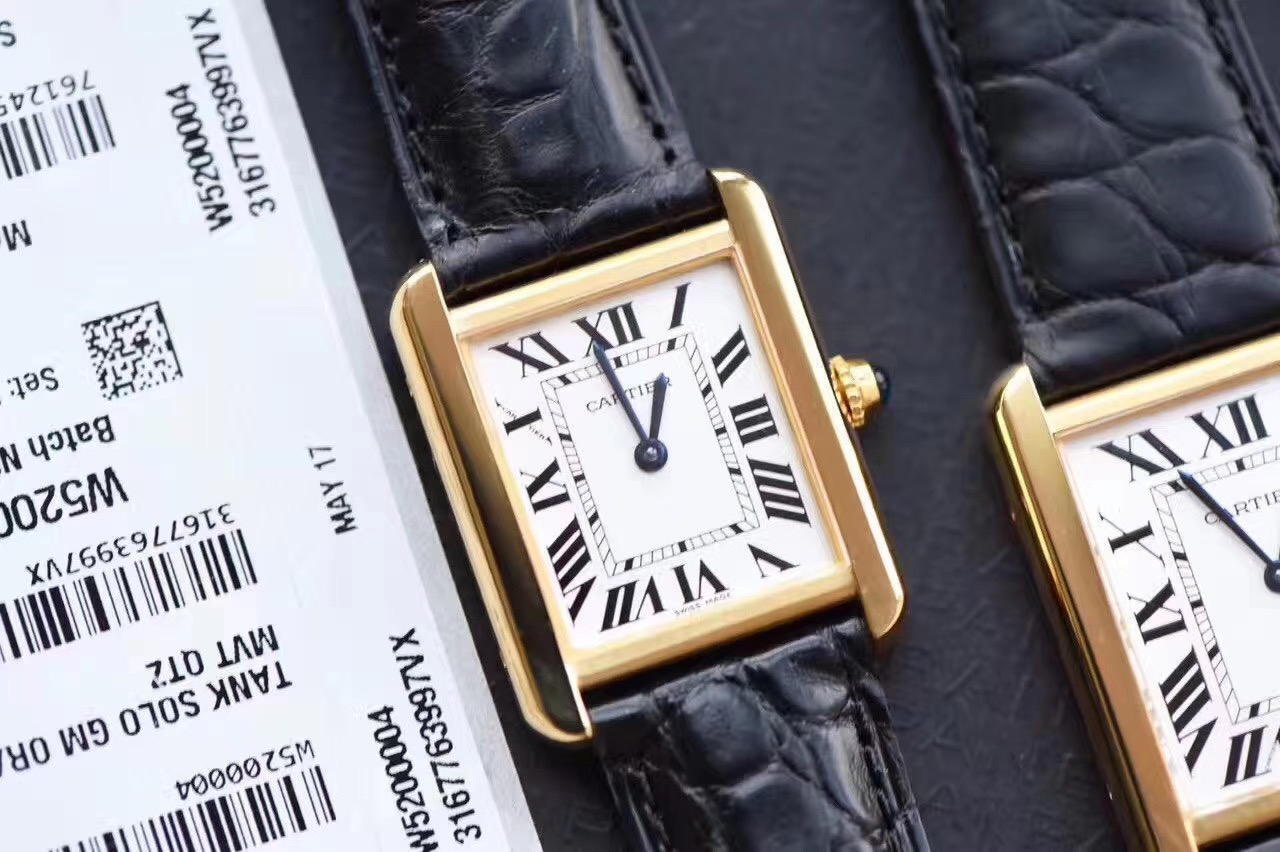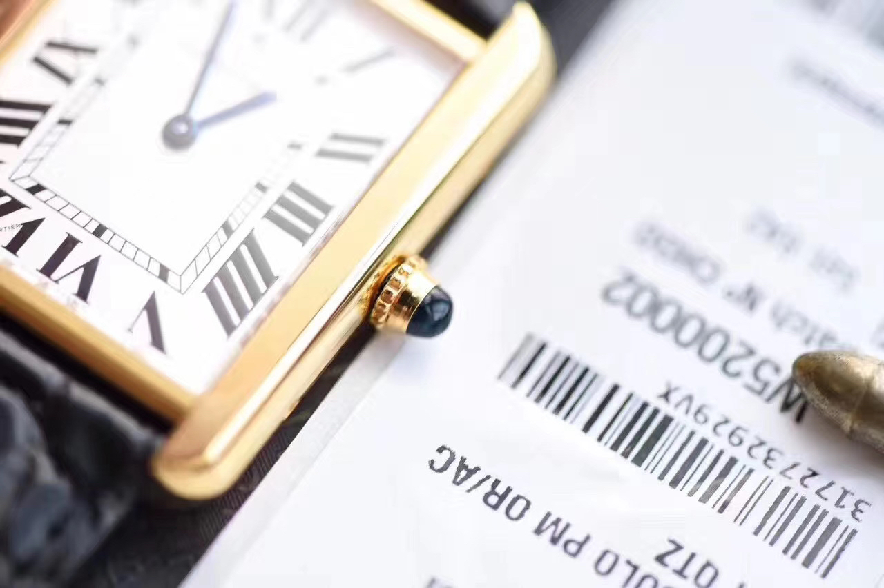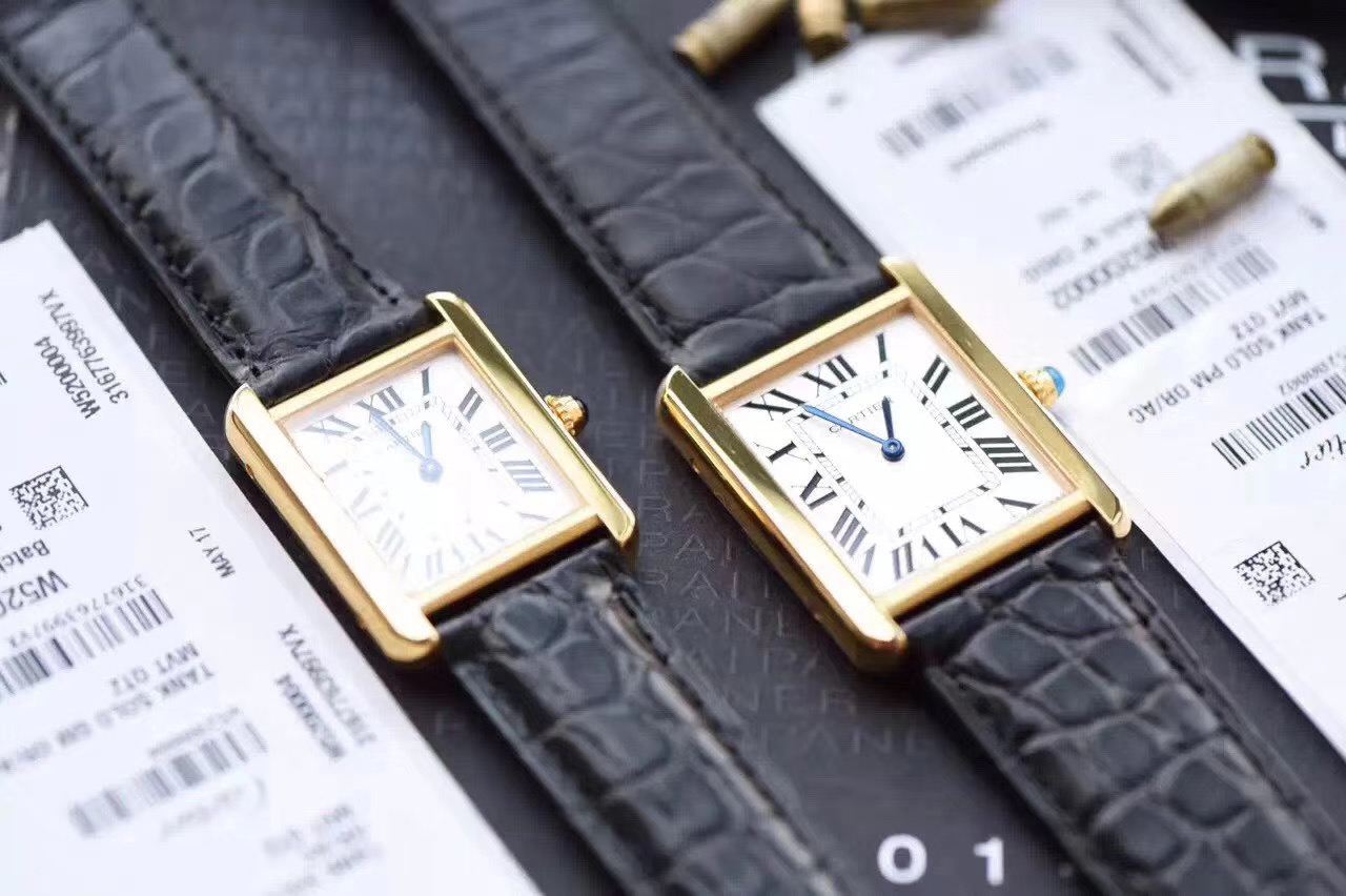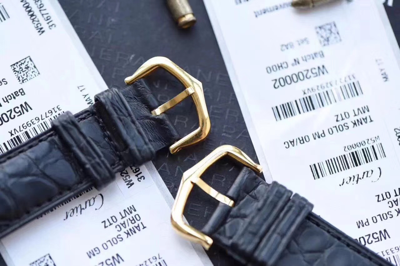 卡地亚TANK坦克系列 黄金壳 女士腕表 复古扣 采用美洲鳄鱼皮表带 搭载瑞士朗达石英机芯