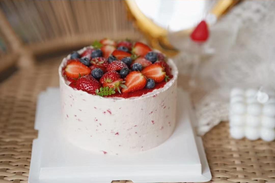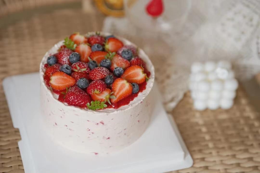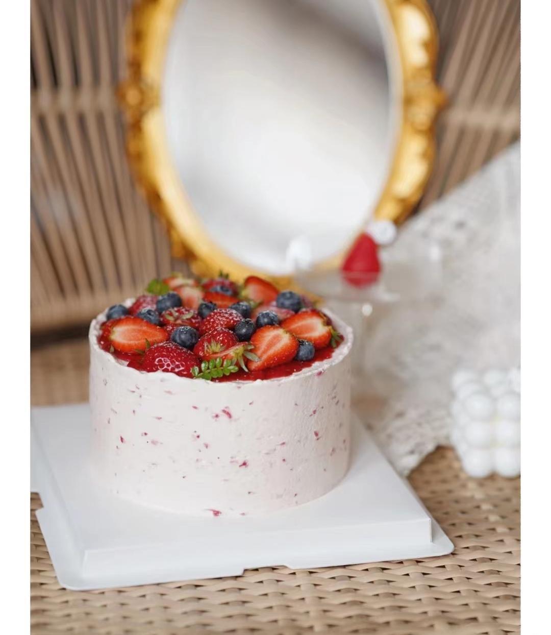 「食材」100%法国 / 新西兰动物奶油,乳酪戚风蛋糕,特调草莓香缇奶油,当季新鲜草莓。