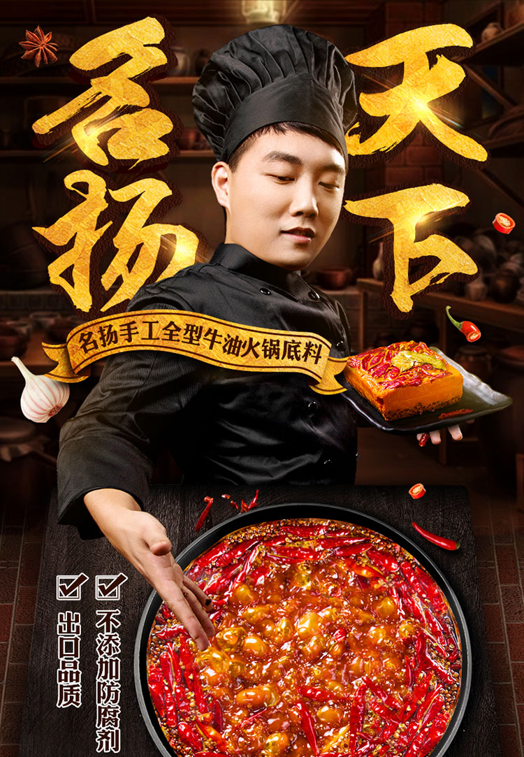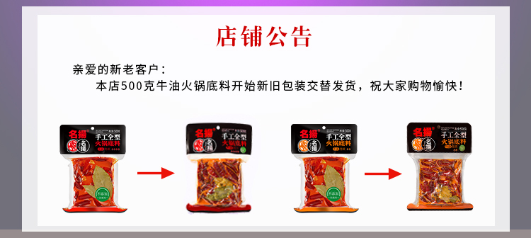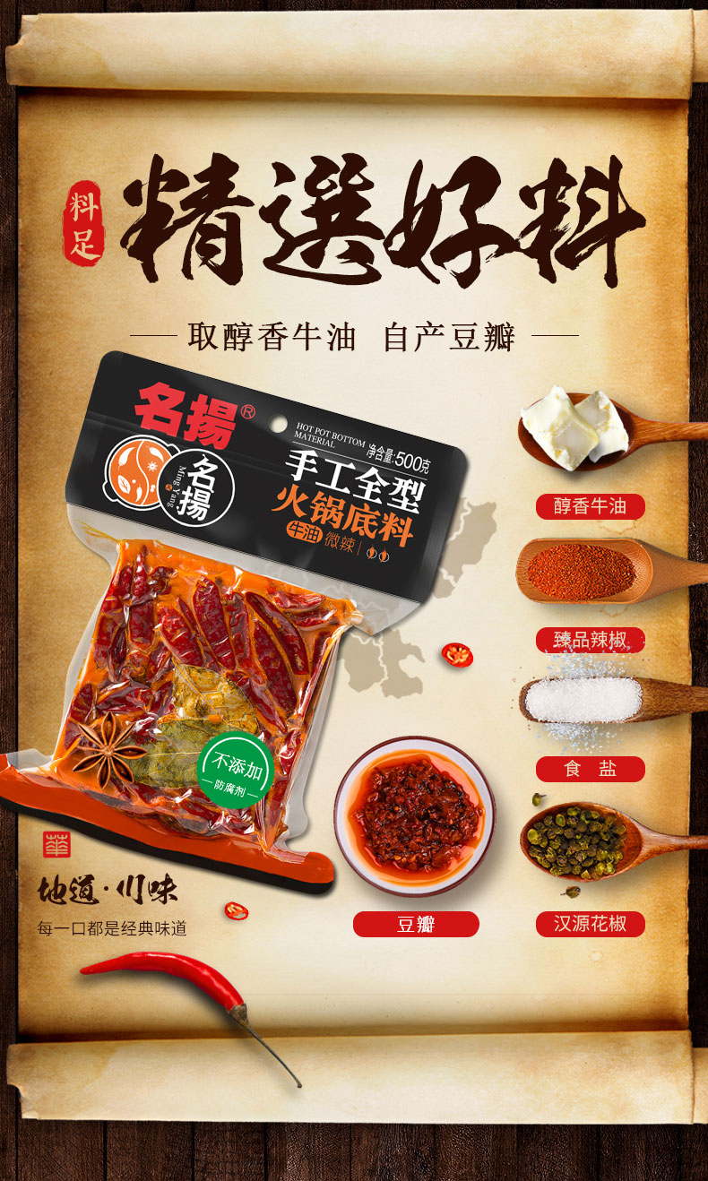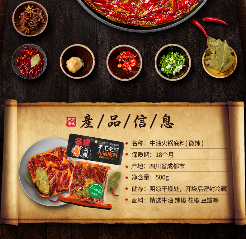 名扬火锅底料牛油微辣500G 手工全型麻辣烫香锅料
