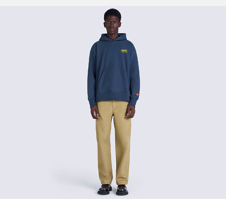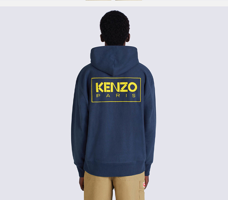 KENZO 高田贤三 男士棉质字母徽标印花连帽卫衣 蓝色 FC65 SW419 4MC 77