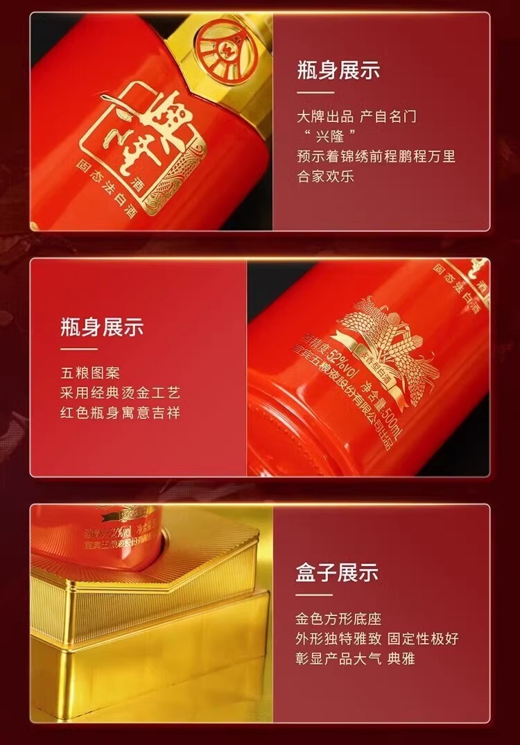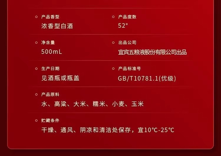 52°五粮液兴隆飘香(红) 浓香型白酒500ml*6瓶装
