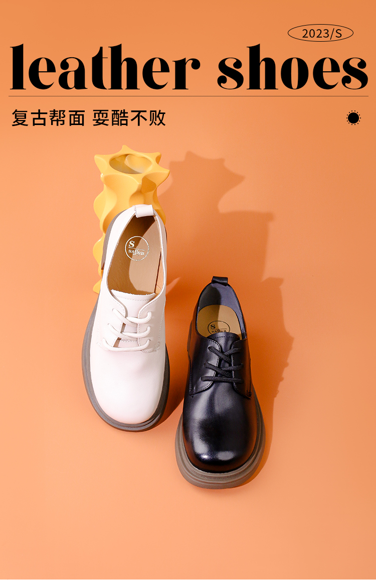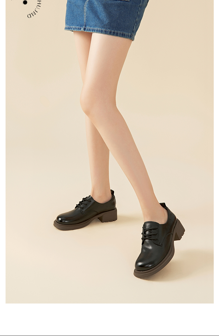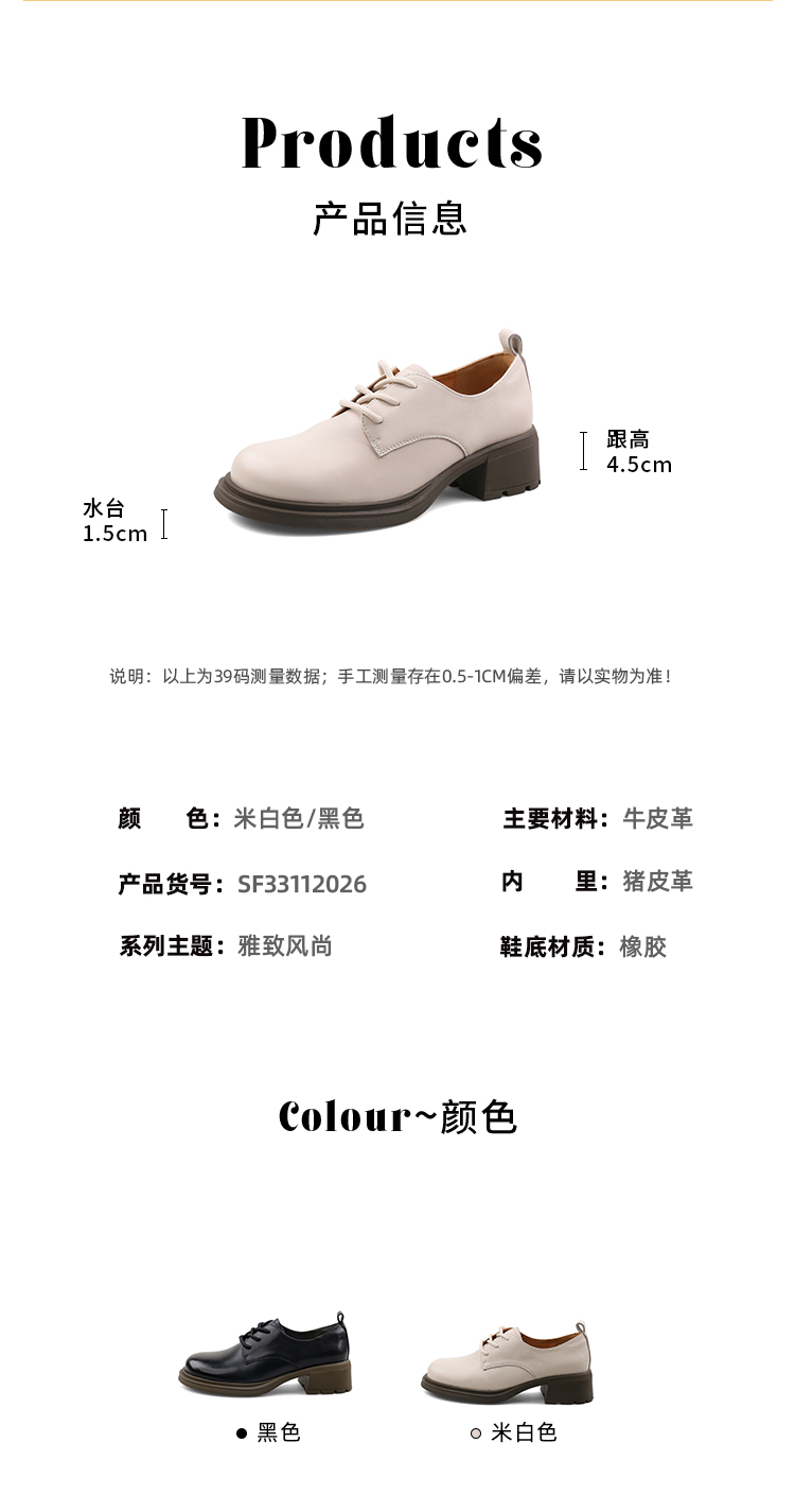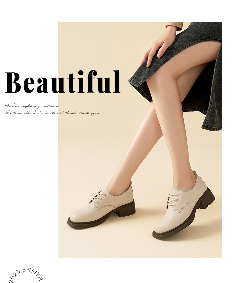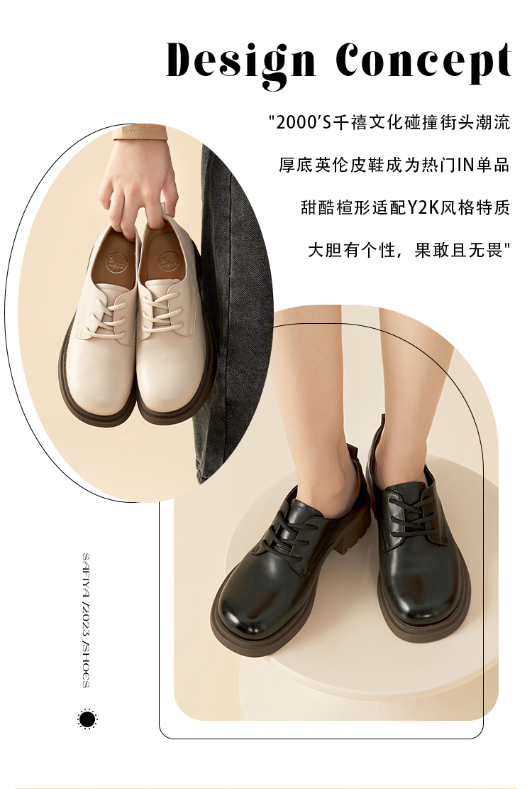 Safiya/索菲娅2023秋季新品英伦风休闲软底真皮系带粗跟小皮鞋乐福鞋牛津鞋SF33112026