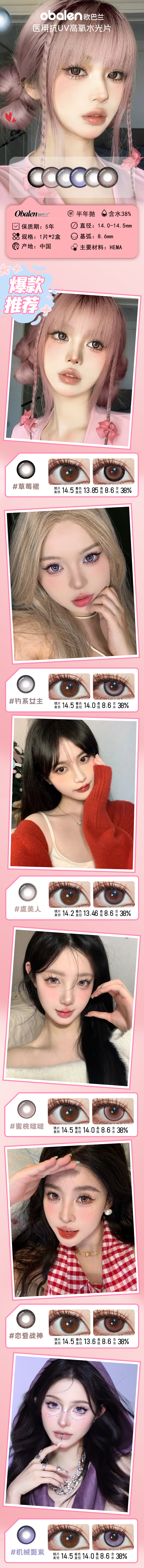 Obalen【第2副0元】半年抛美瞳【粉紫色合集】欧巴兰欧美甜蜜约会浪漫仙女款隐形眼镜2片装