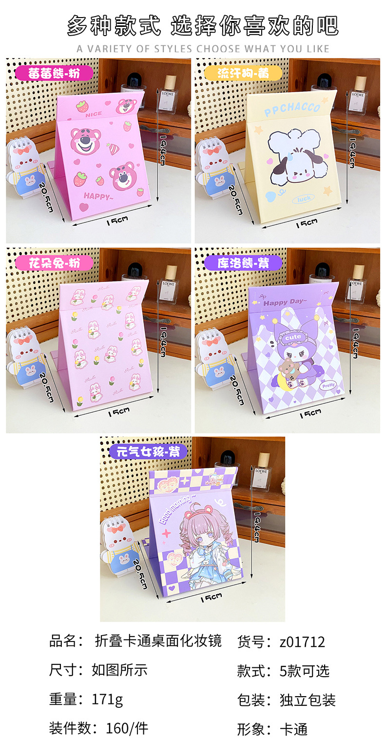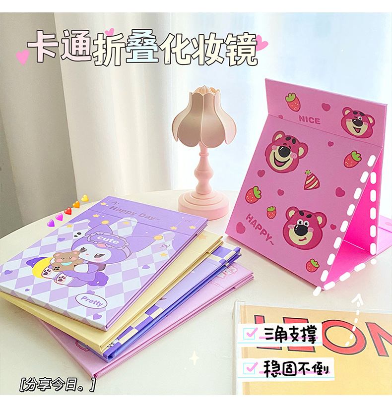 「卡通折叠化妆镜!数款可选」莓莓熊可爱折叠镜子 学生用便携式化妆镜女生居家日用桌面梳妆镜家居饰品