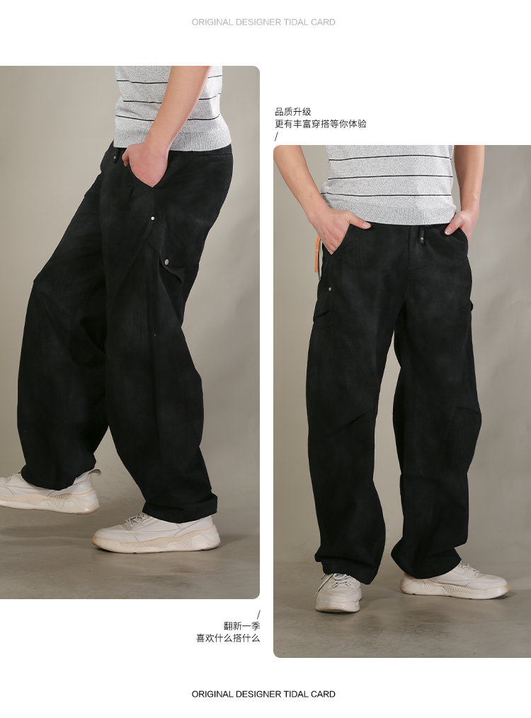 DRONKOO 2026 抽绳满幅刷漆印花两侧袋盖轻工装中厚工装长裤