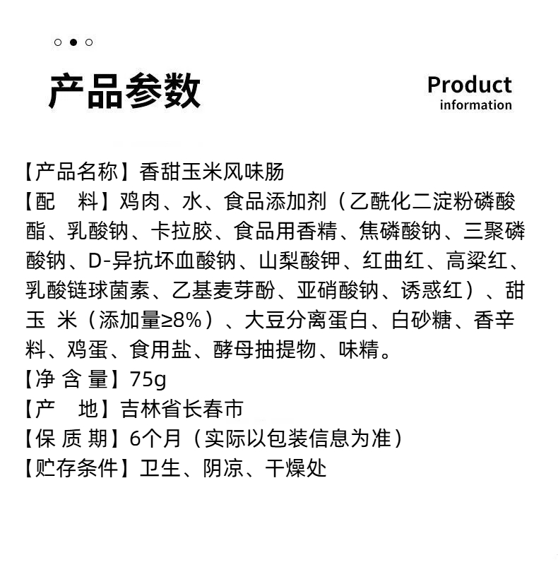 皓月香甜玉米粒风味肠75g/根
