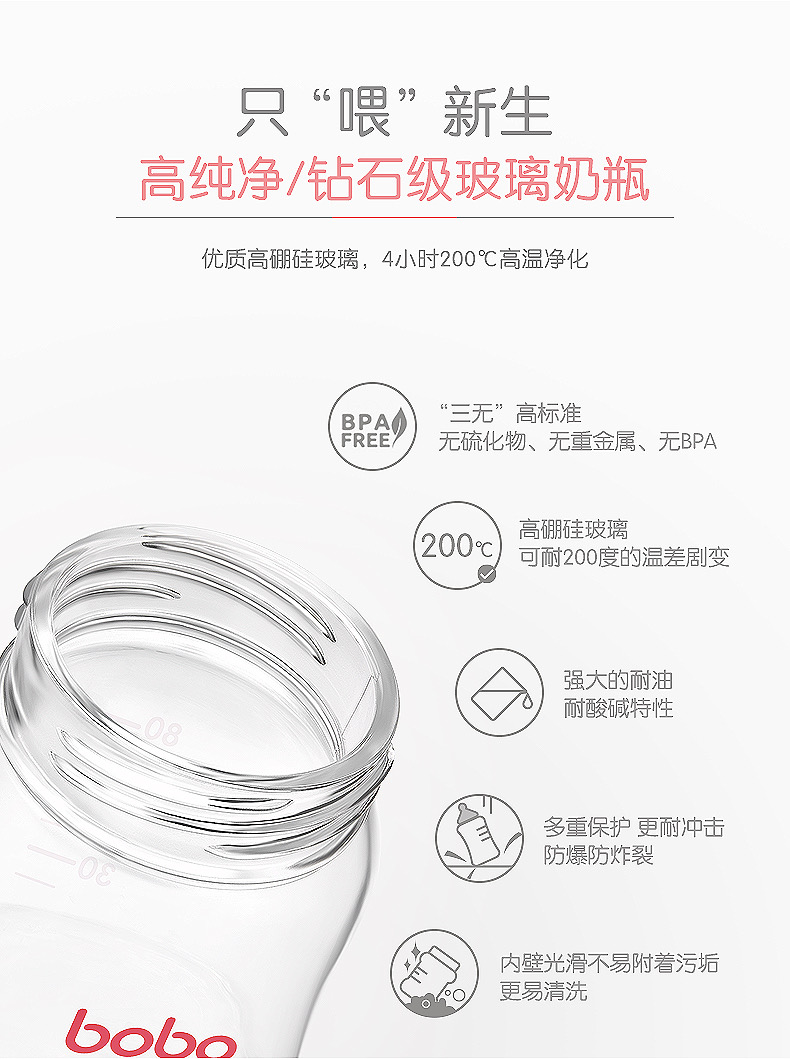 bobo婴儿宽口玻璃奶瓶100ml