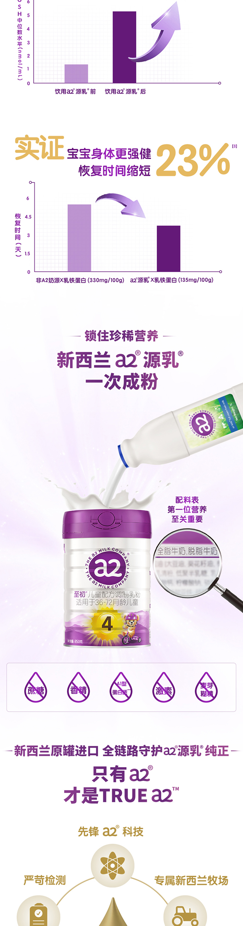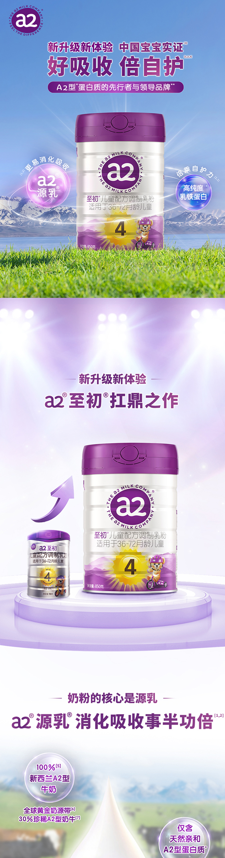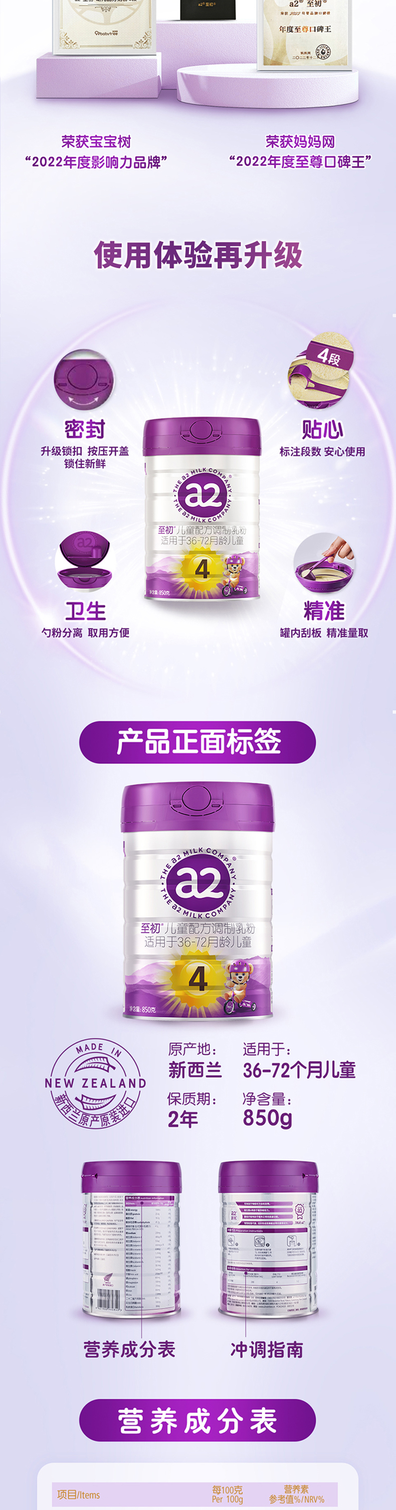 【51周年店庆】新国标a2至初4段婴幼儿童牛奶粉850g原罐原装新西兰进口 /A2-960840【整箱6罐】
