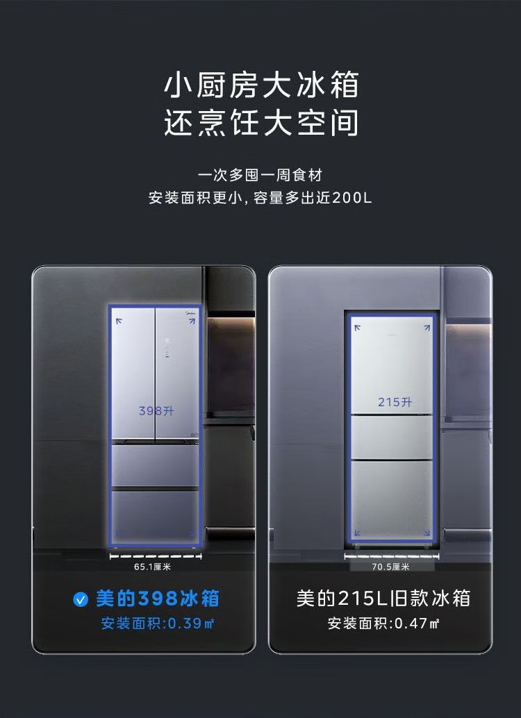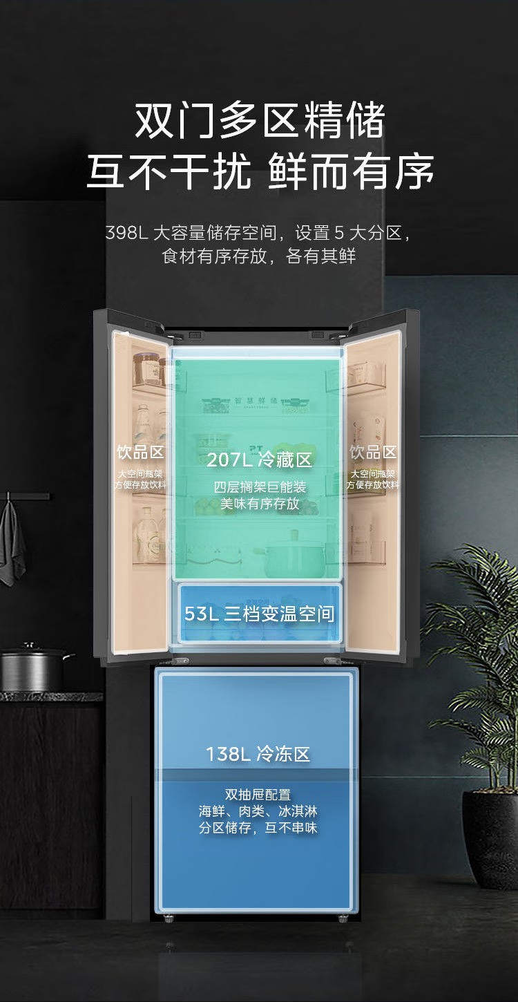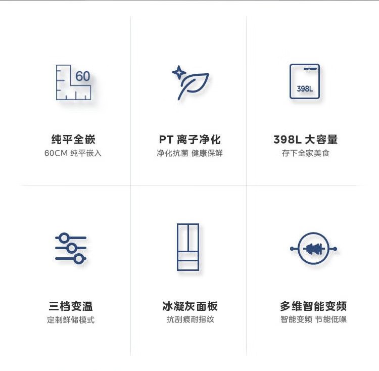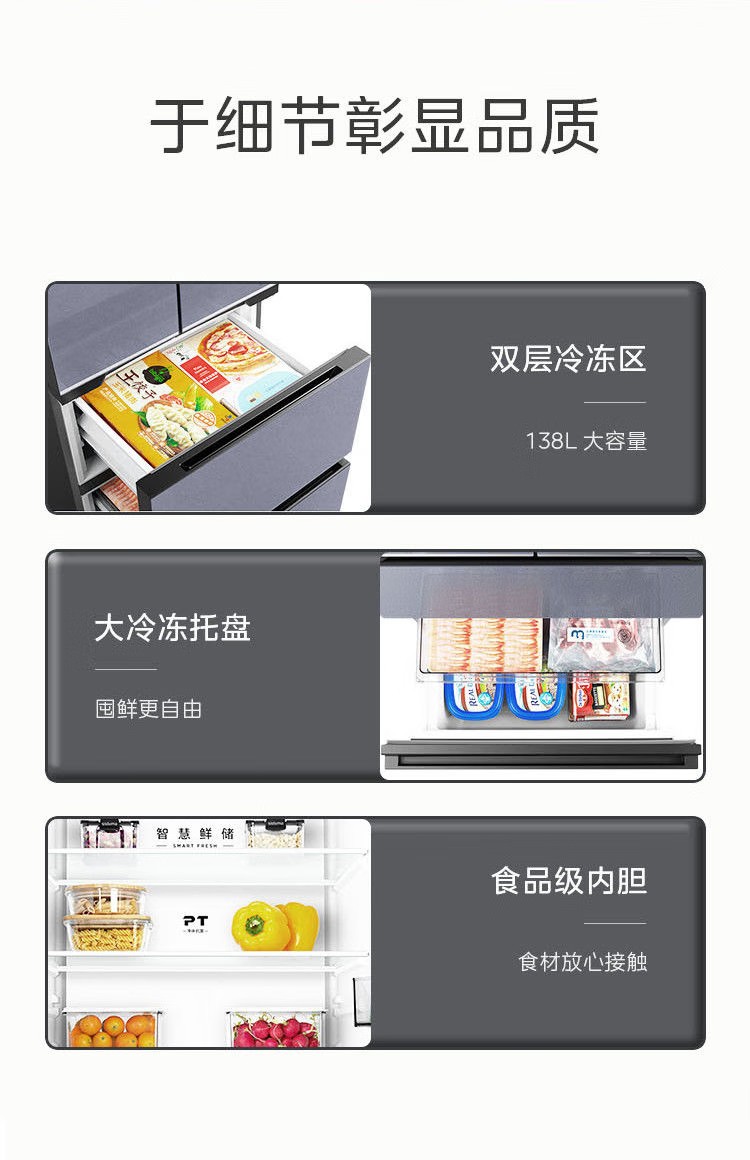 美的(Midea)冰箱398升法式四门纯平全嵌大冷冻抗菌保鲜节能变频家用大冰箱BCD-398WUFGPM冰凝灰
