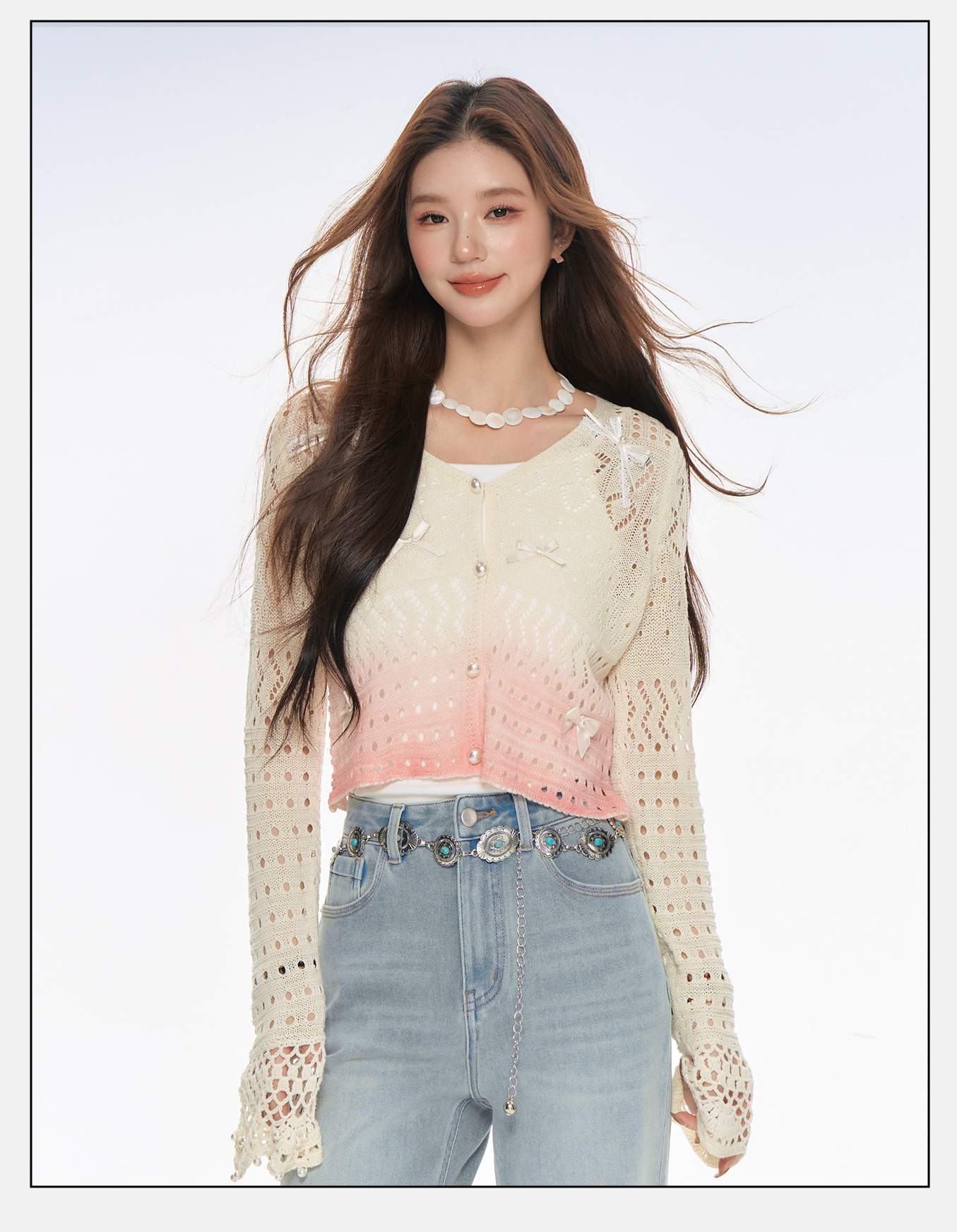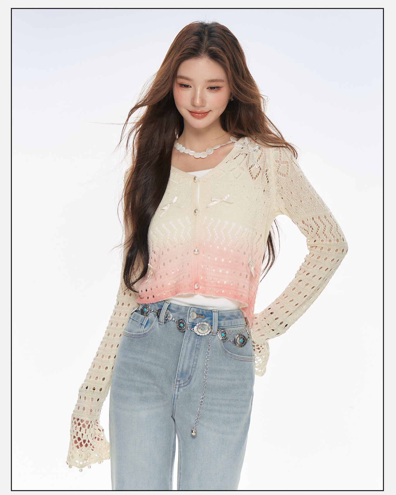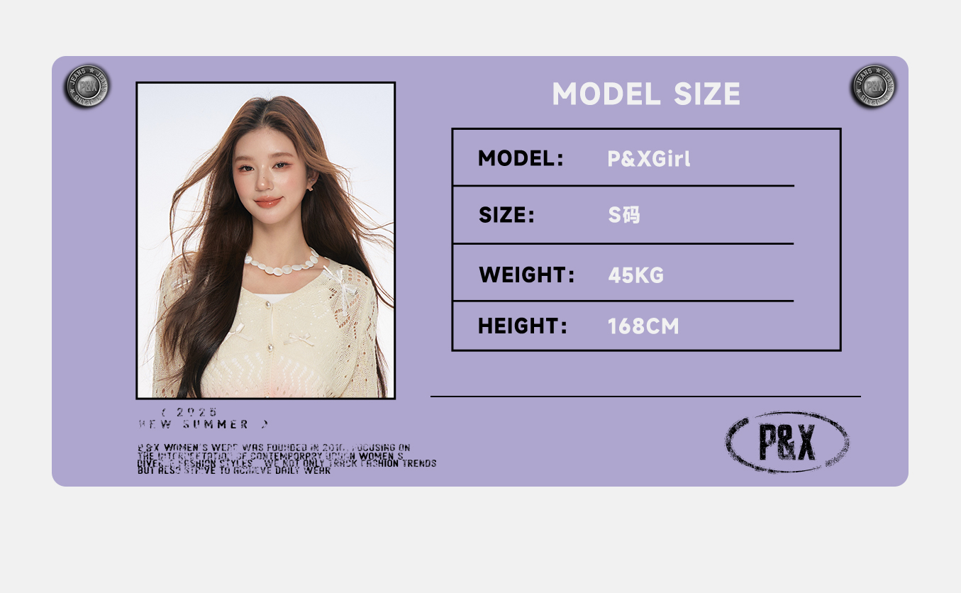 P&X设计师女装2025秋季新款短款两件套镂空针织衫825315162 杏色