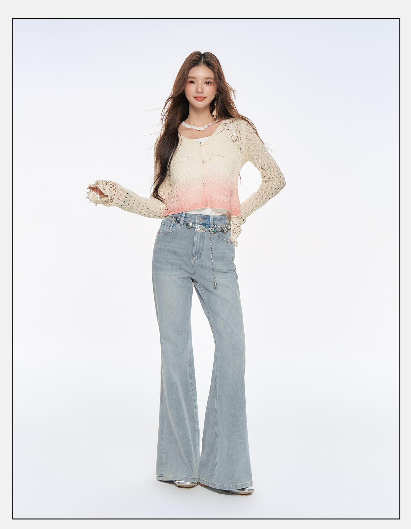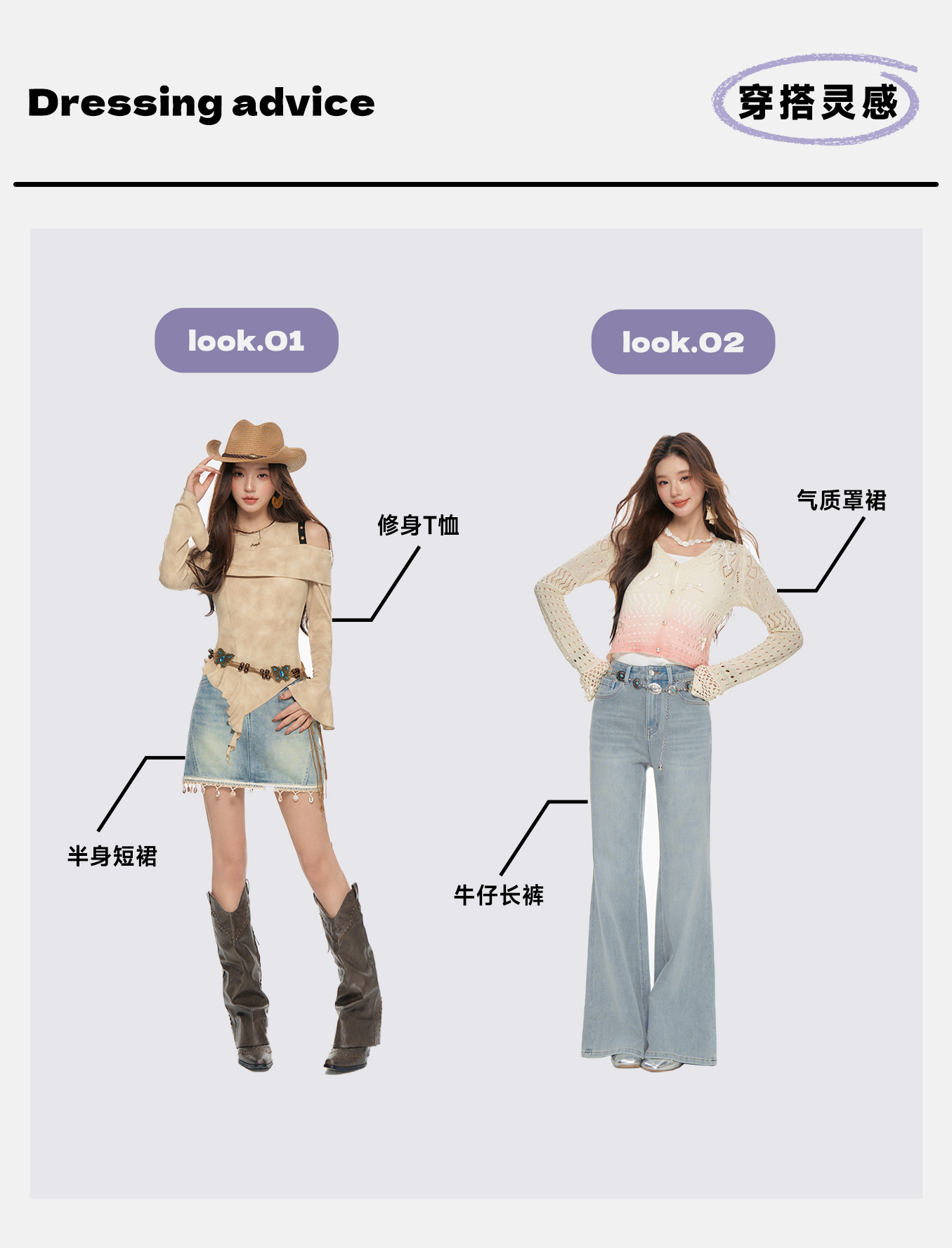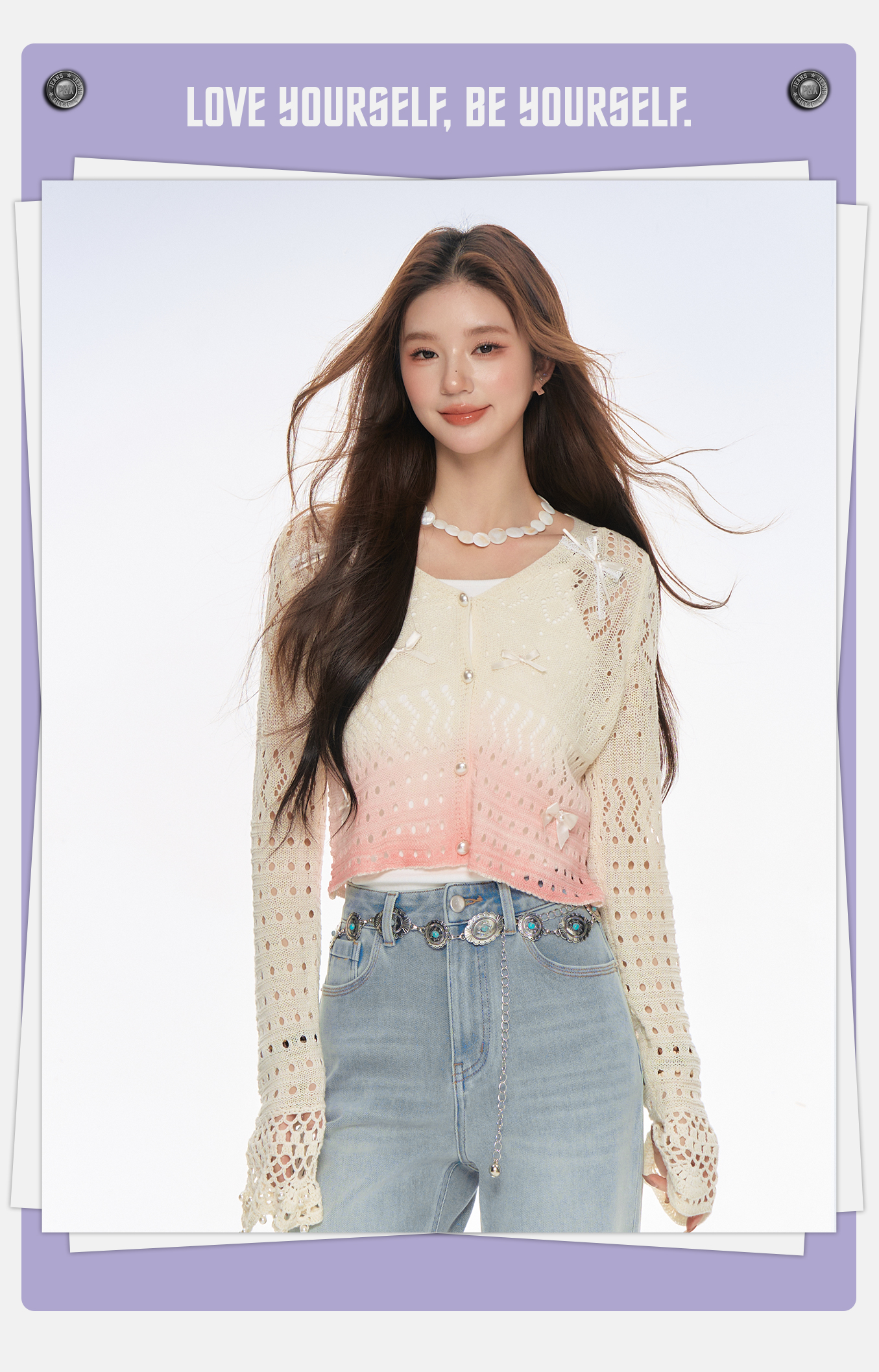 P&X设计师女装2025秋季新款短款两件套镂空针织衫825315162 杏色