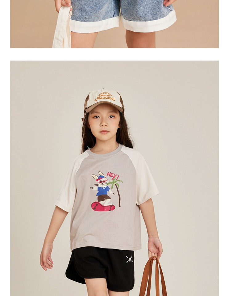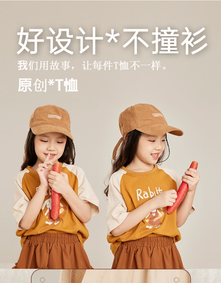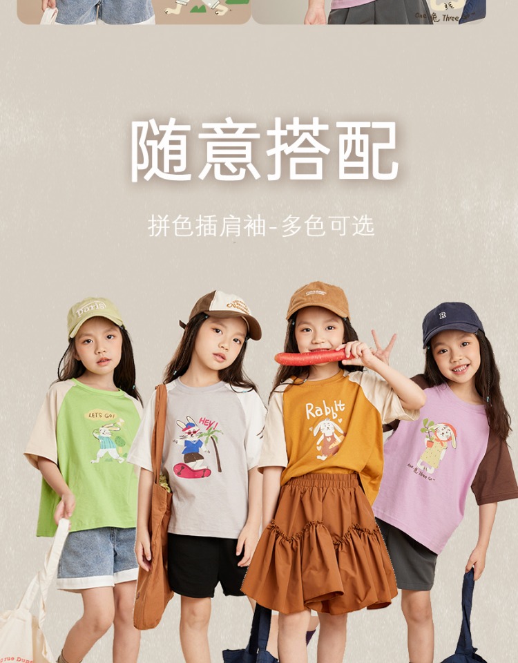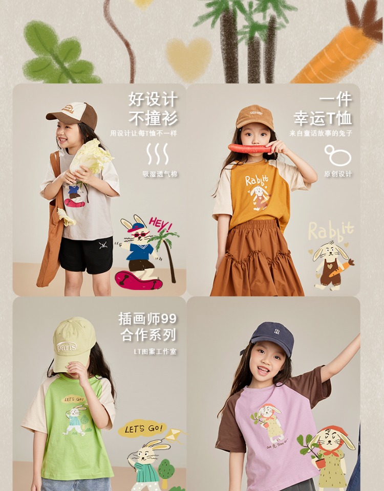 【插画师联名】女童短袖t恤纯棉夏新款2023兔子系列韩版儿童上衣