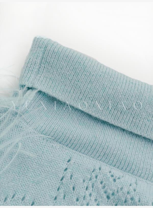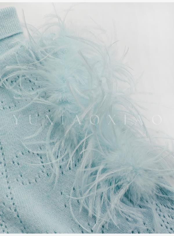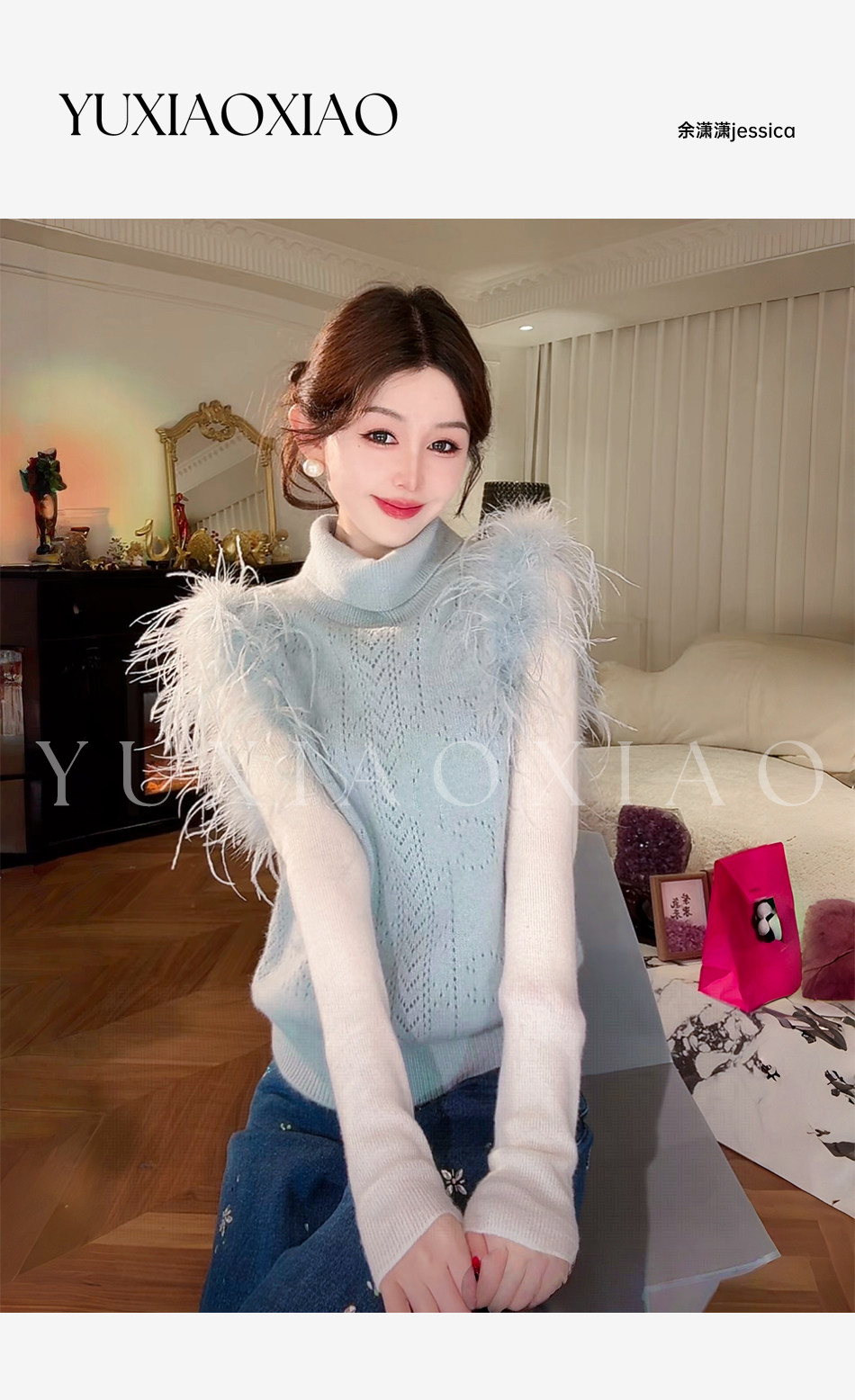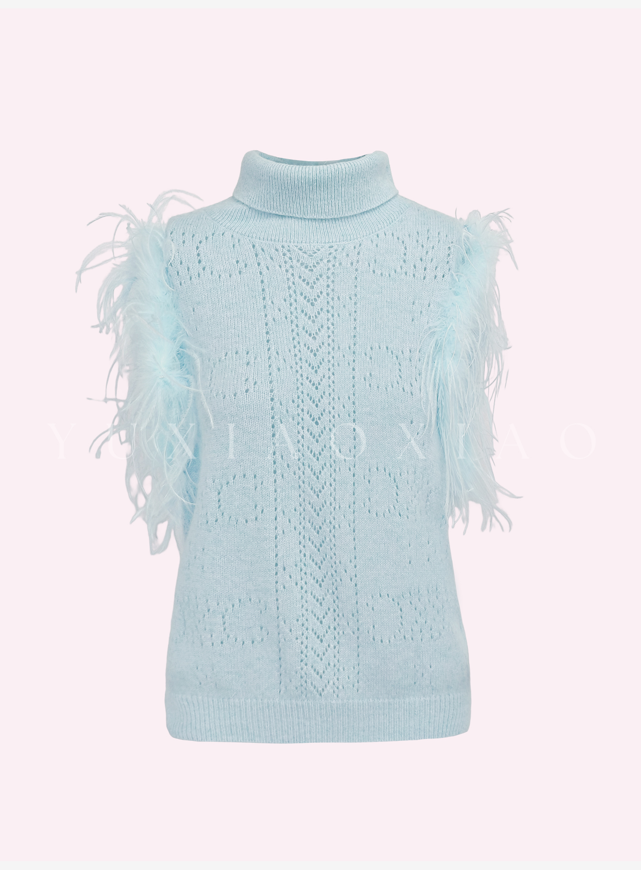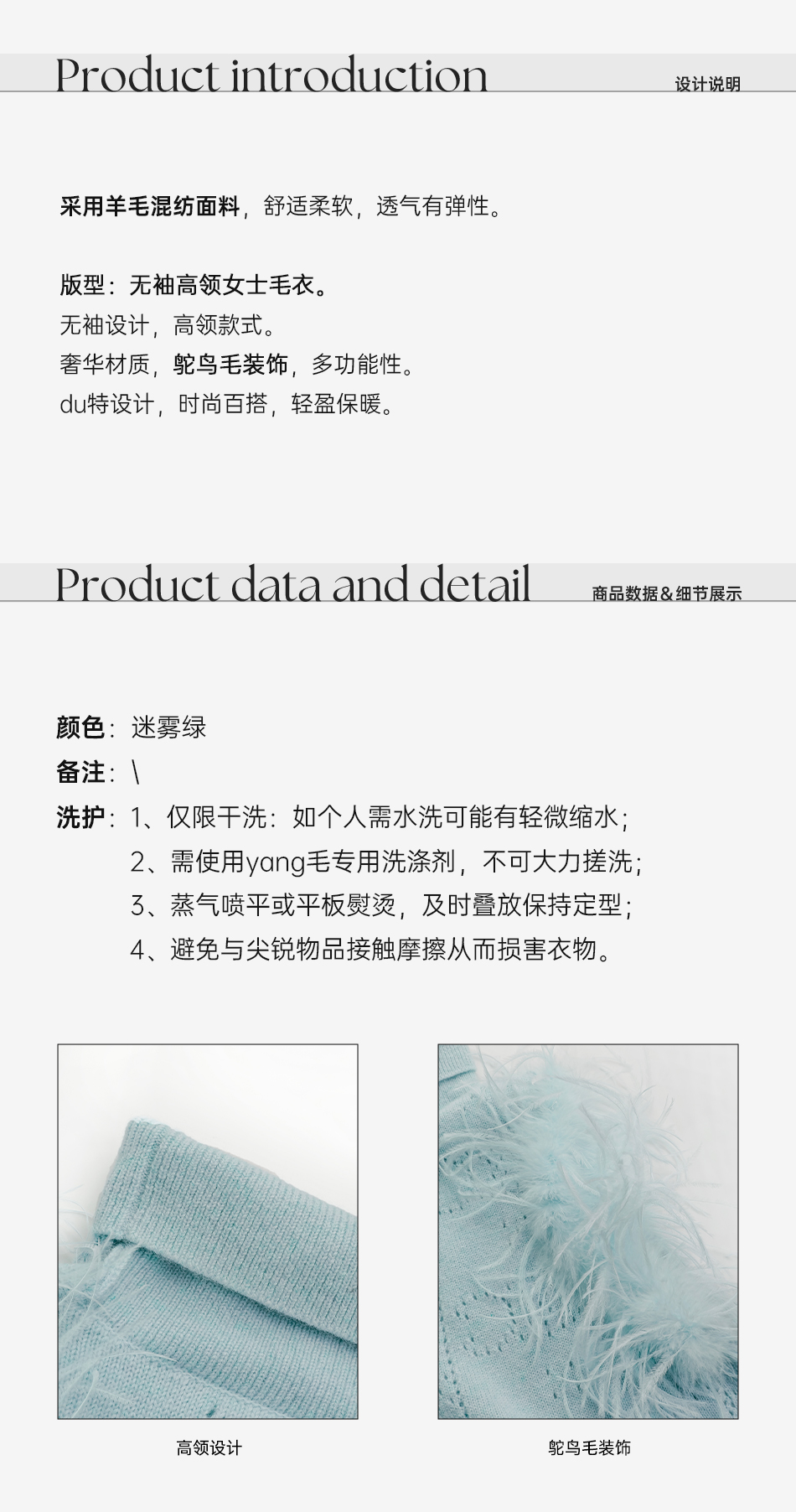 余潇潇【柔光舞曲】设计感绵羊毛羊驼毛山羊绒高领无袖拼鸵鸟毛毛衣