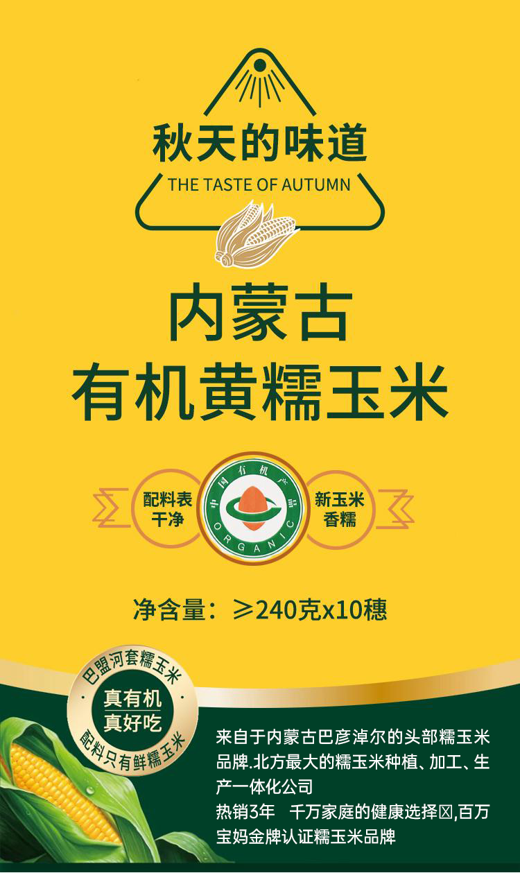 秋天的味道有机糯黄玉米10穗礼盒