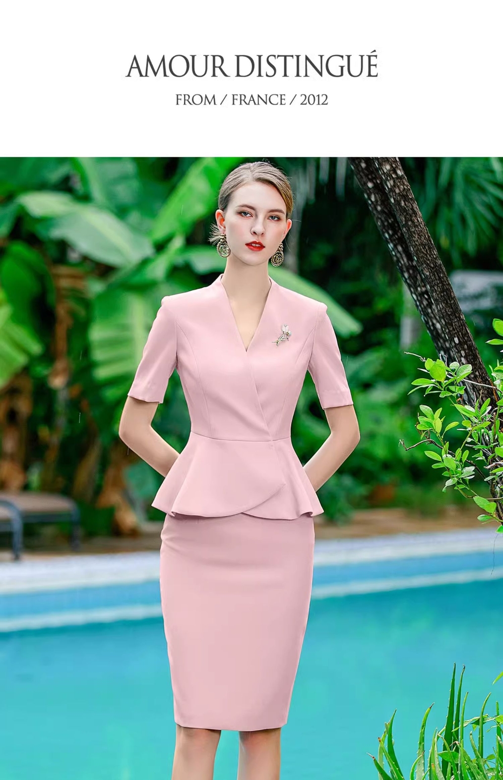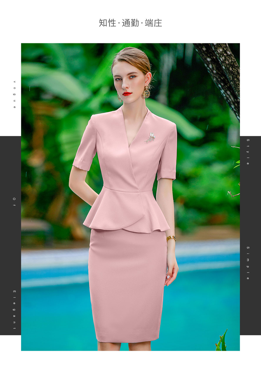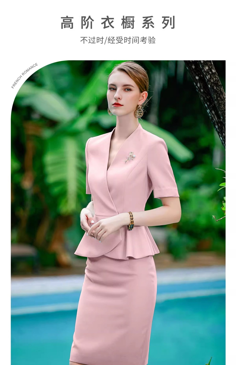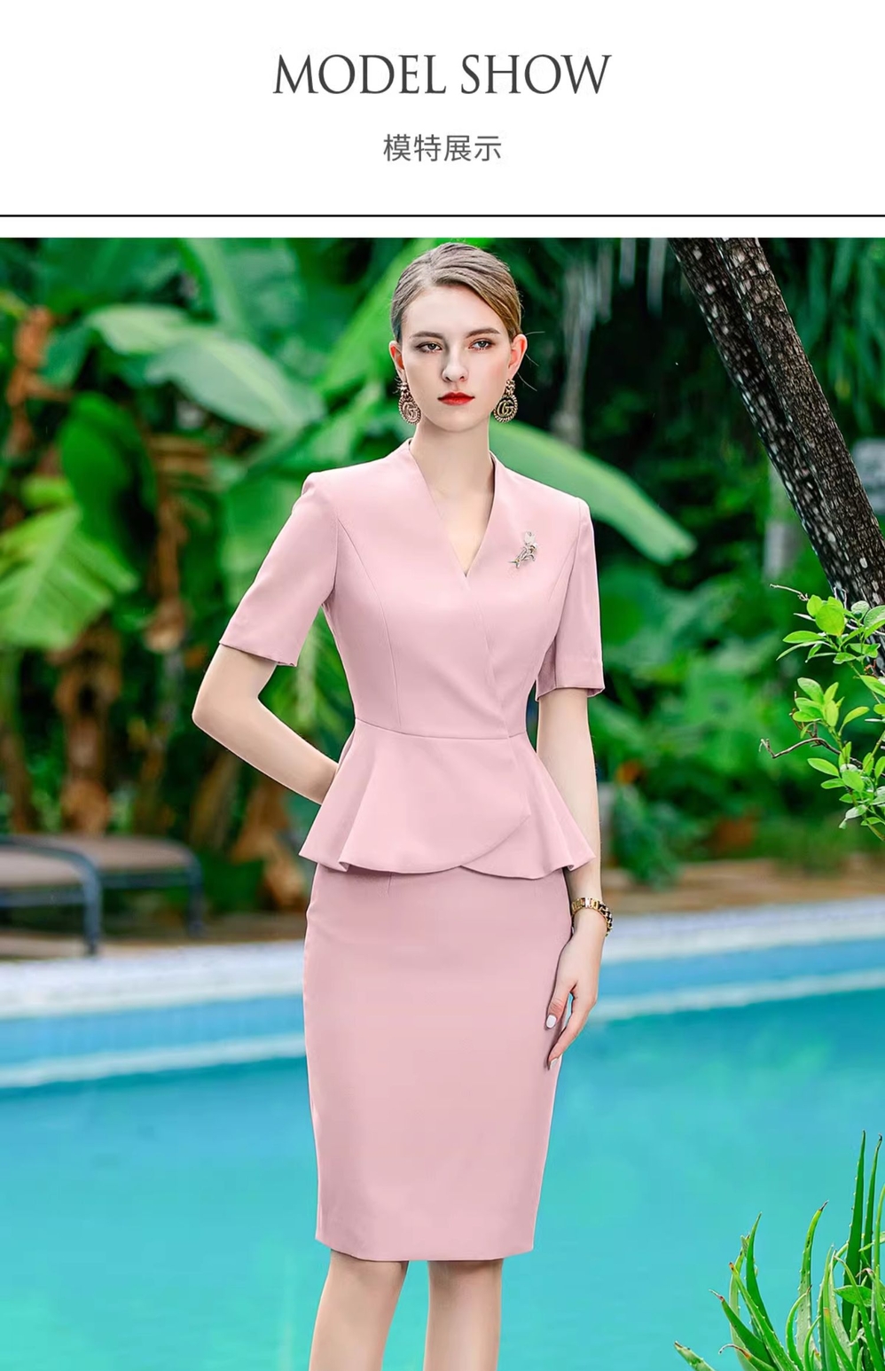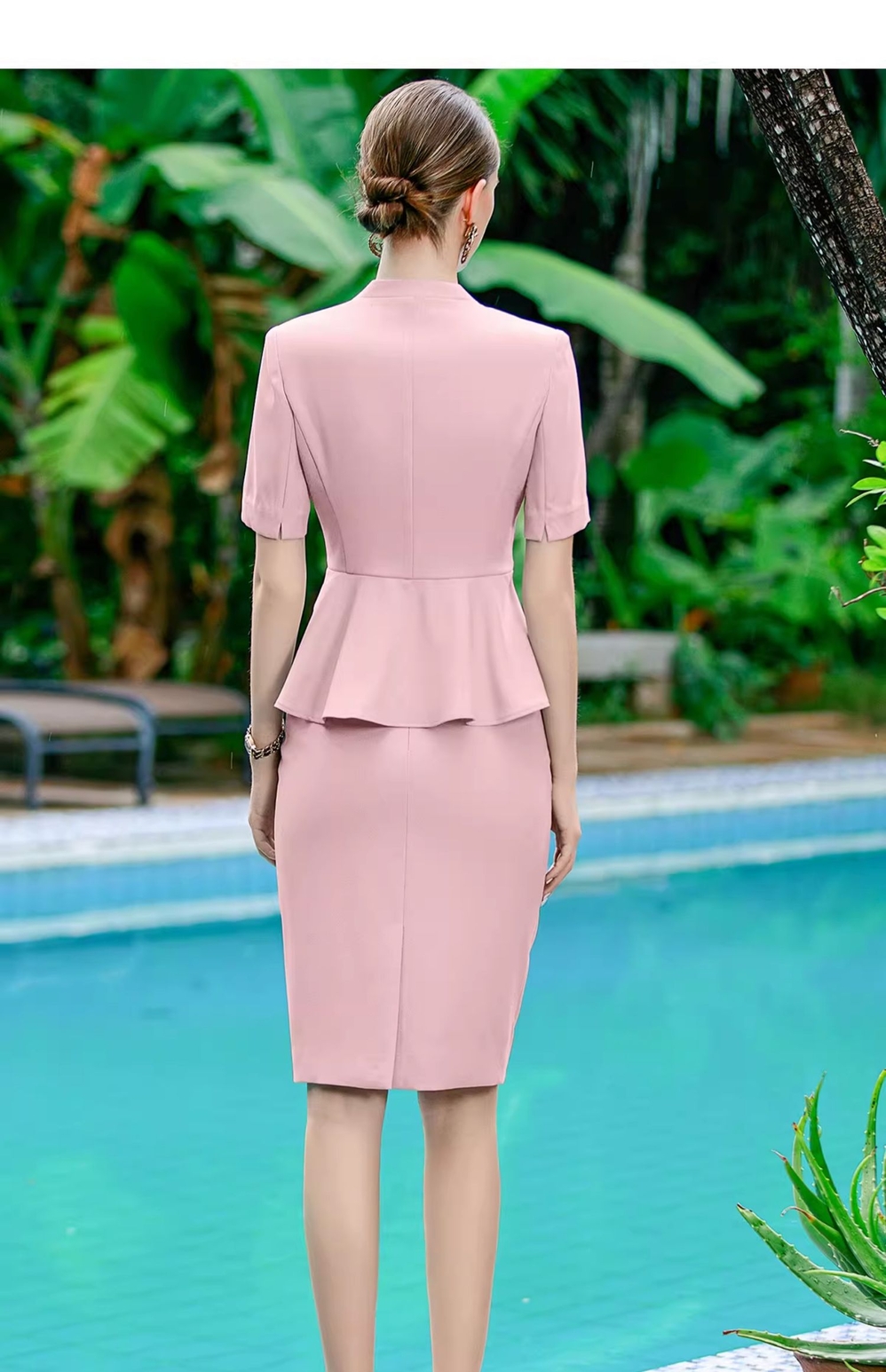 IWY/粉色西装套裙职业女裙套装西装裙夏季短袖美容院工作服CS1756-P