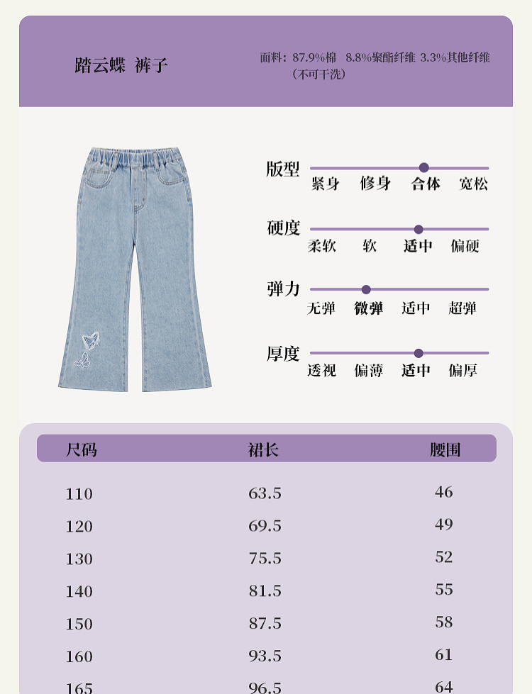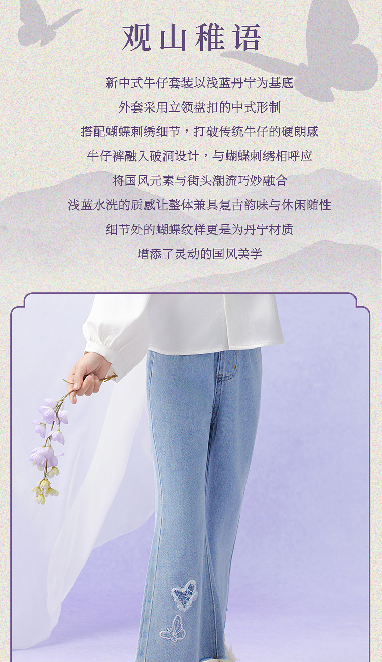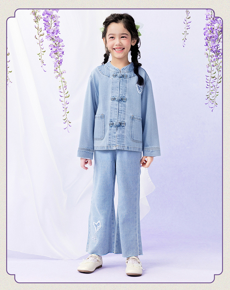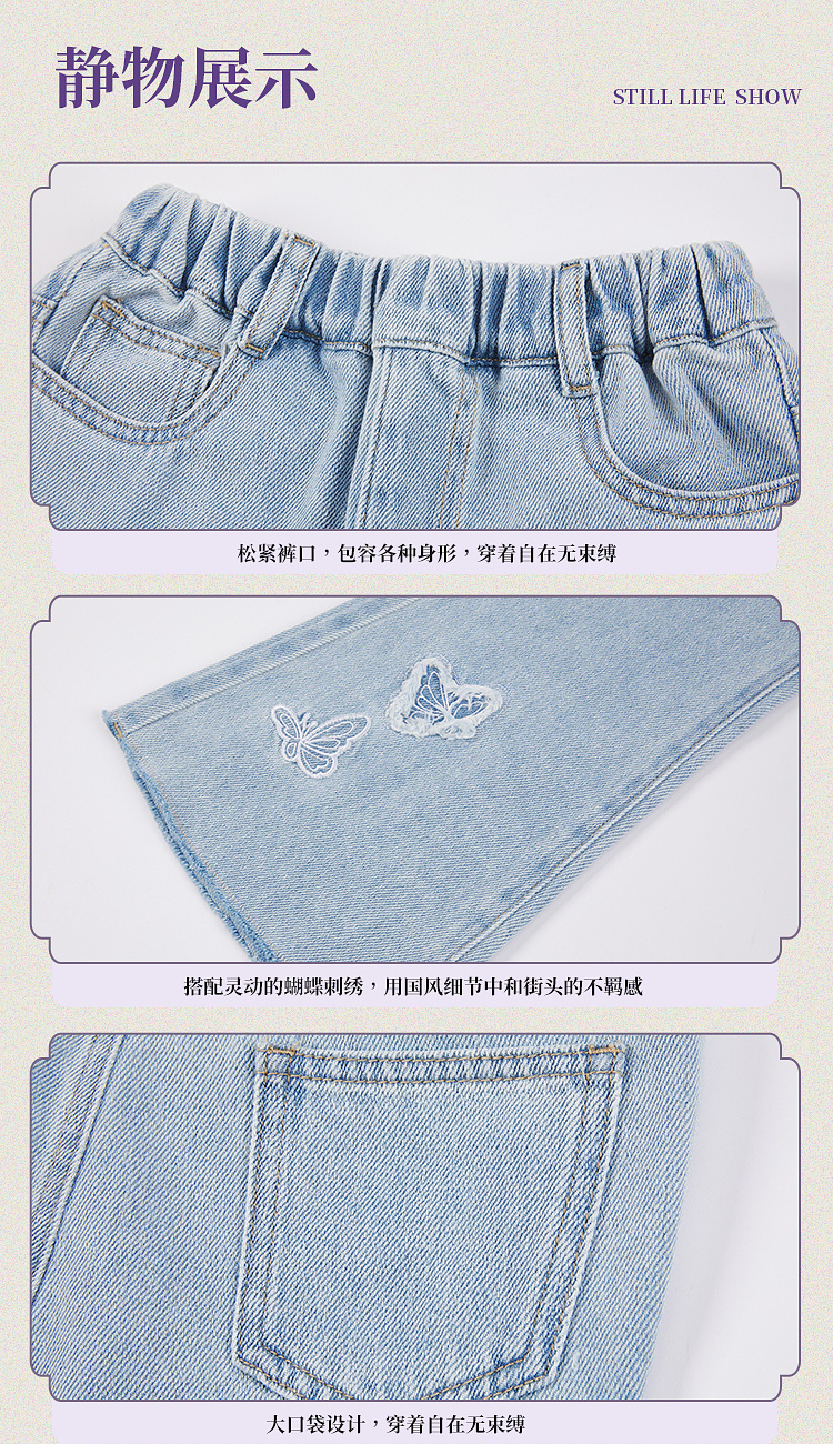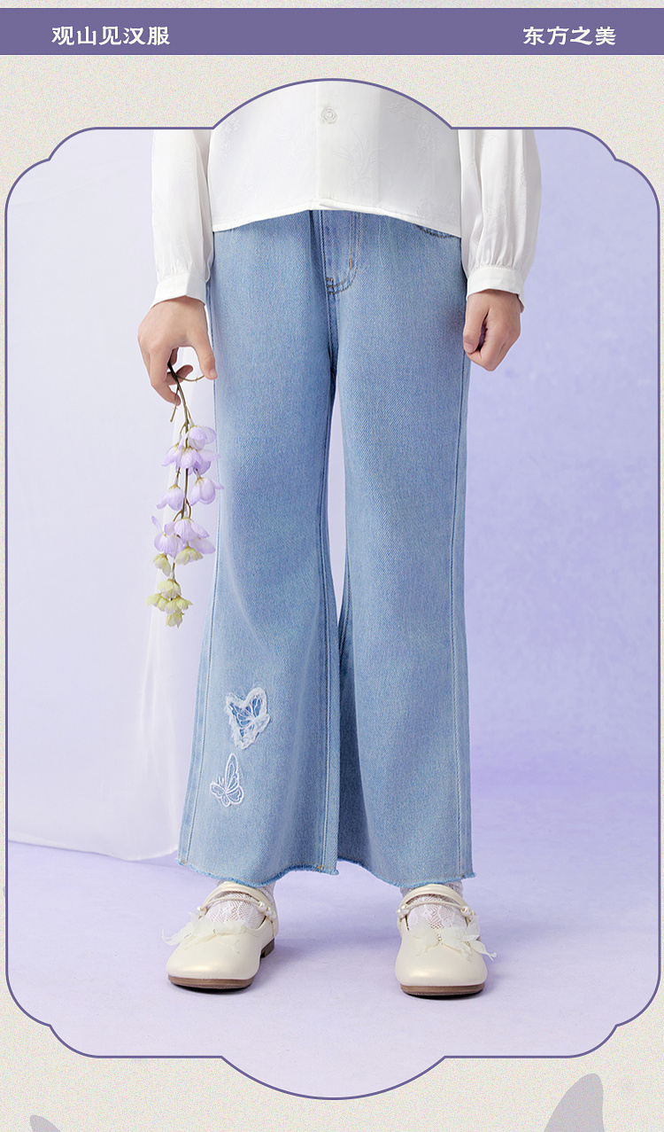 笛莎Deesha 2026年夏季新款青少年冰肤棉凉感牛仔阔腿裤裤子