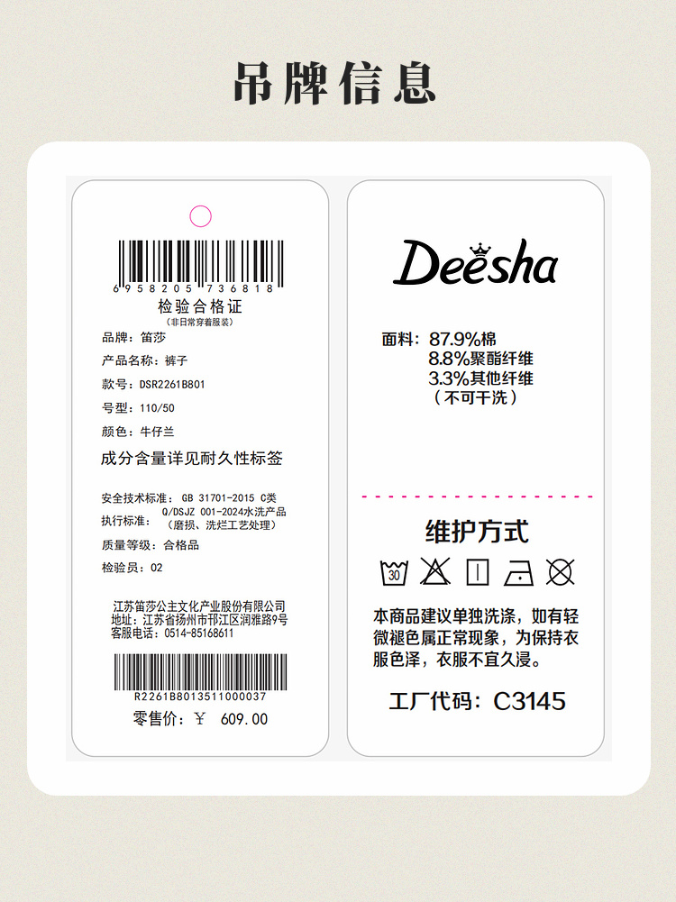 笛莎Deesha 童装女童裤子2025秋新款女童基础宽松束脚裤