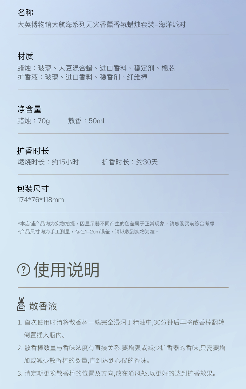 大英博物馆 大航海系列 无火香薰香氛蜡烛套装 海洋派对