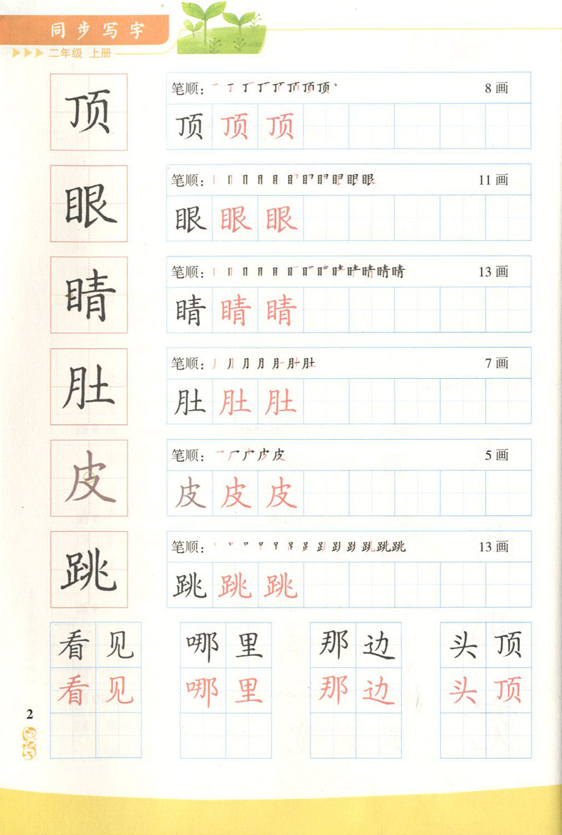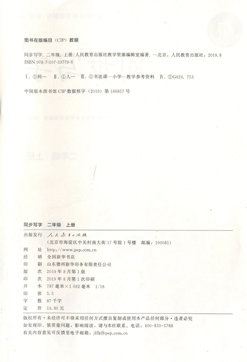 义务教育课本 同步写字 2年级上册/二年级第一学 部编版 上海小学语文教材同步练习字帖 写字课课练 人民教育出版社