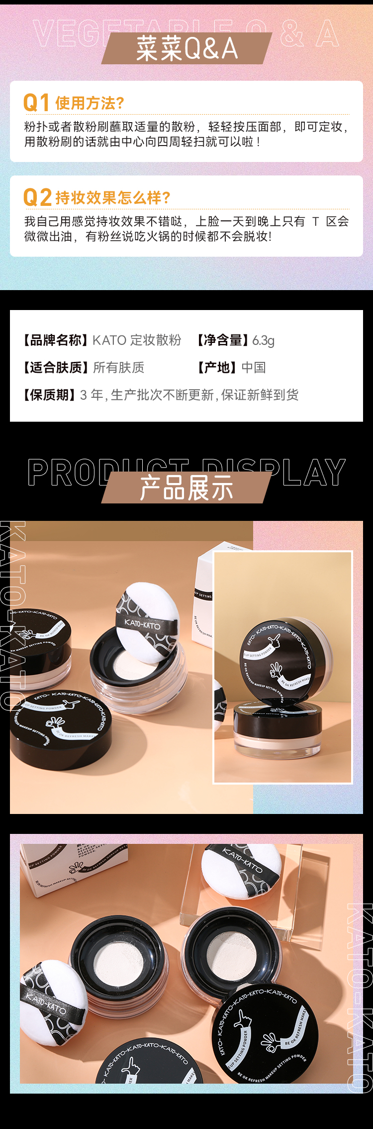 KATO 控油定妆持久遮瑕散粉 定妆散粉