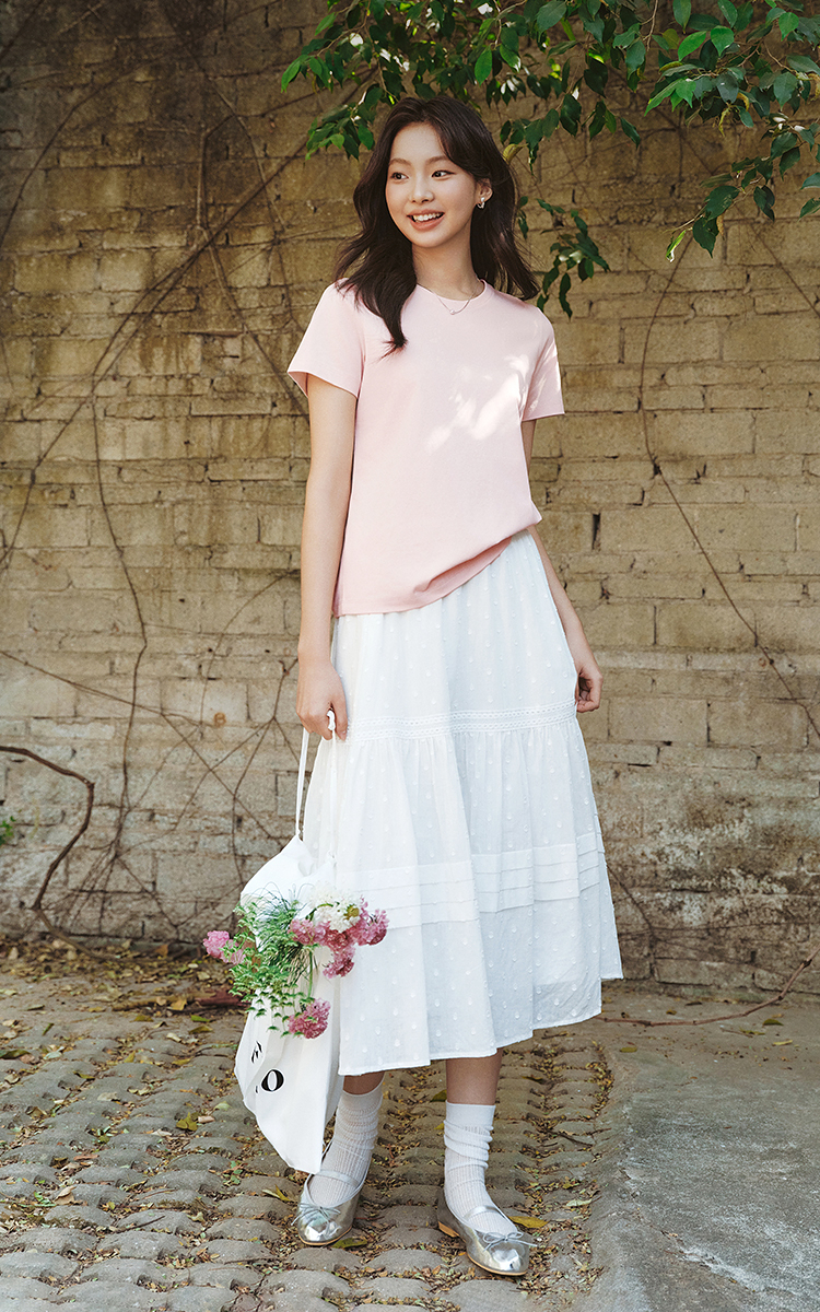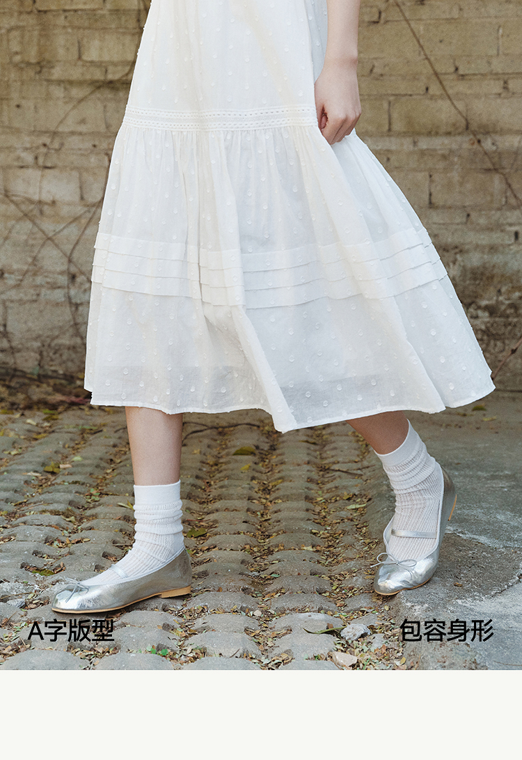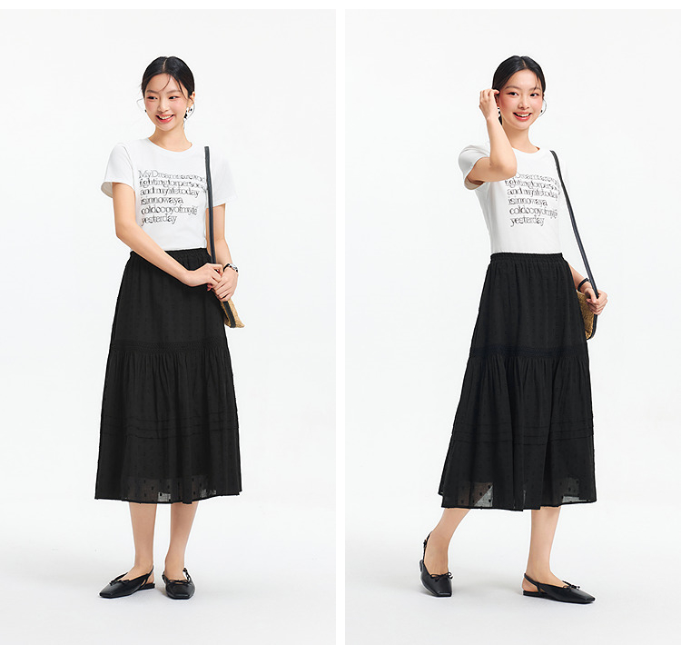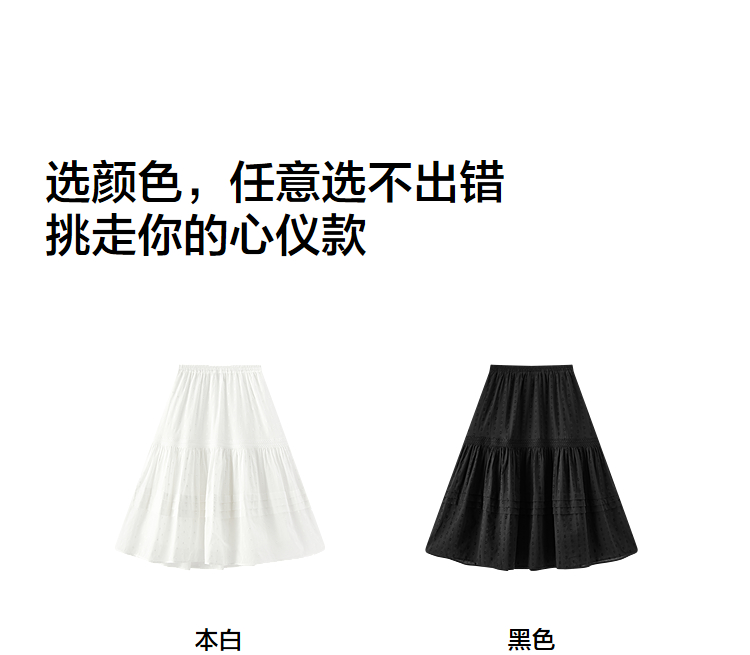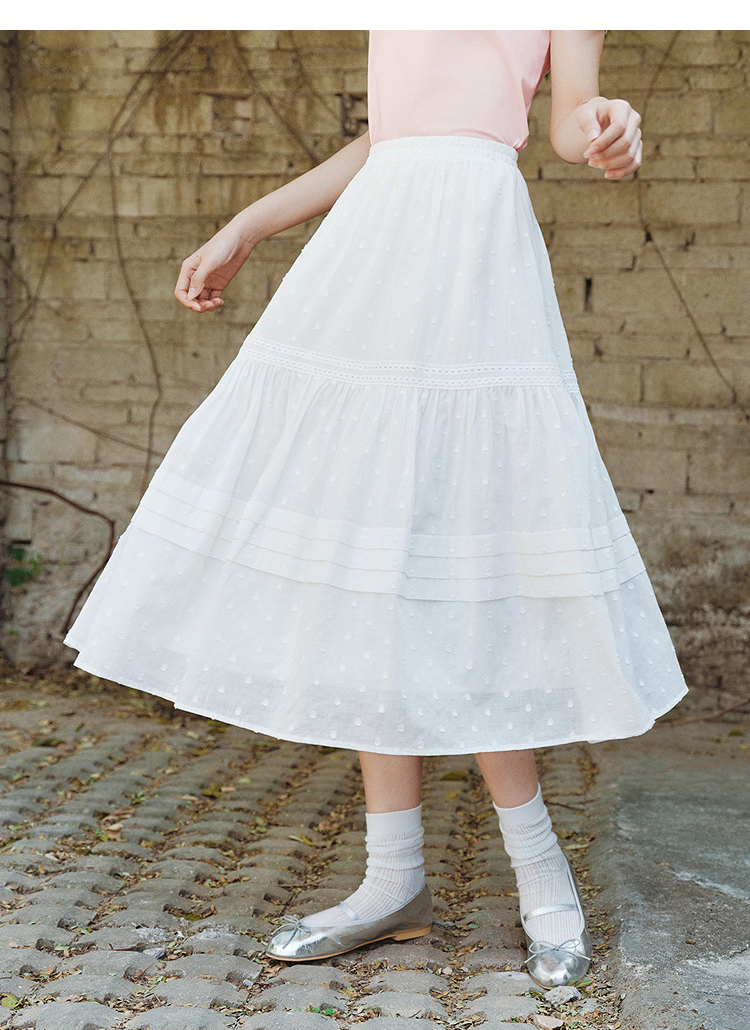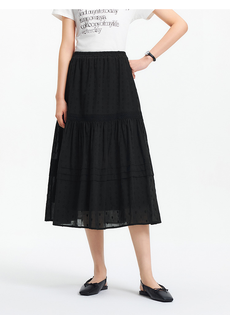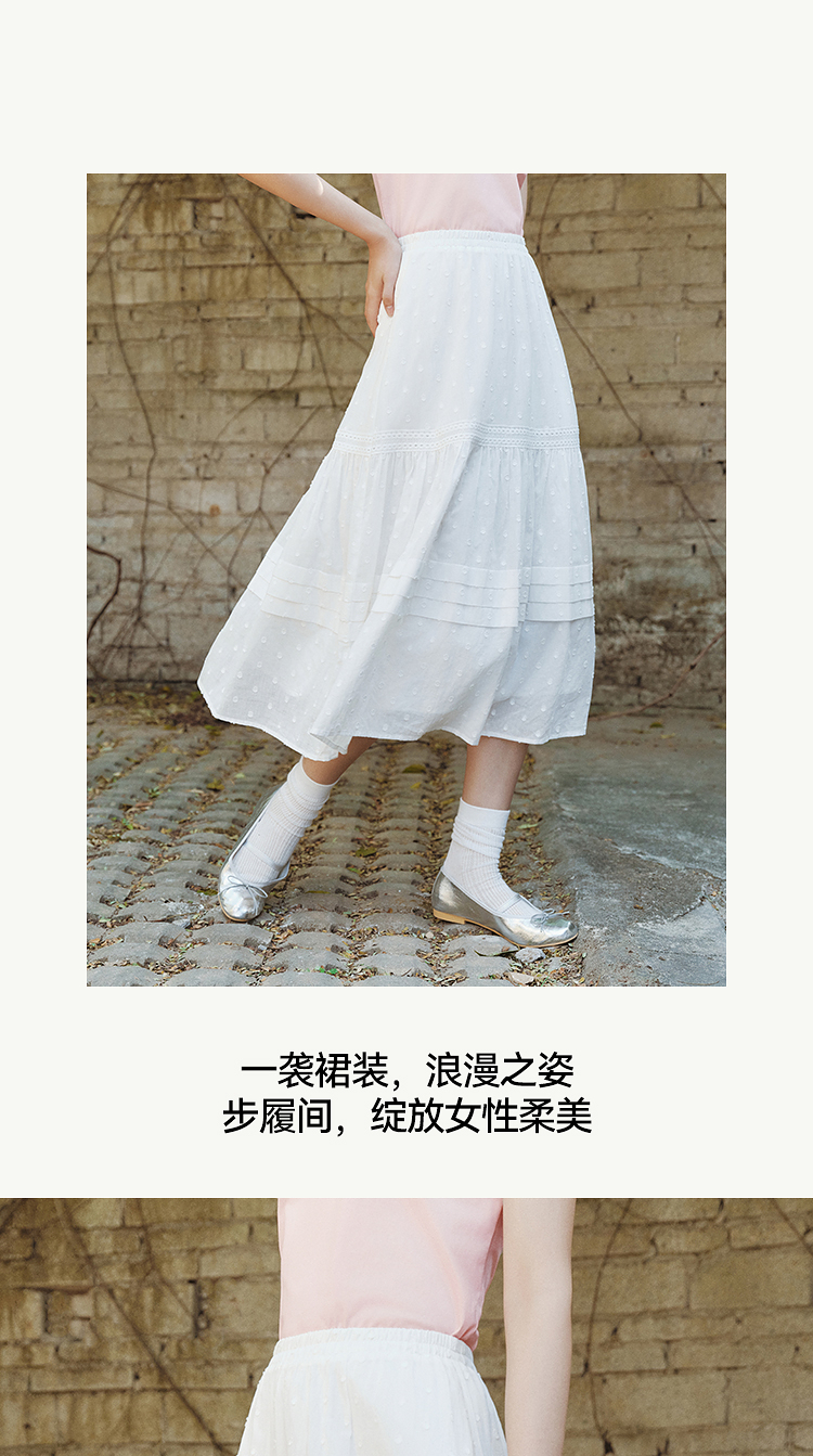 森马半身裙女松紧腰A字裙气质夏季2025新款拼接蕾丝波点长裙优雅