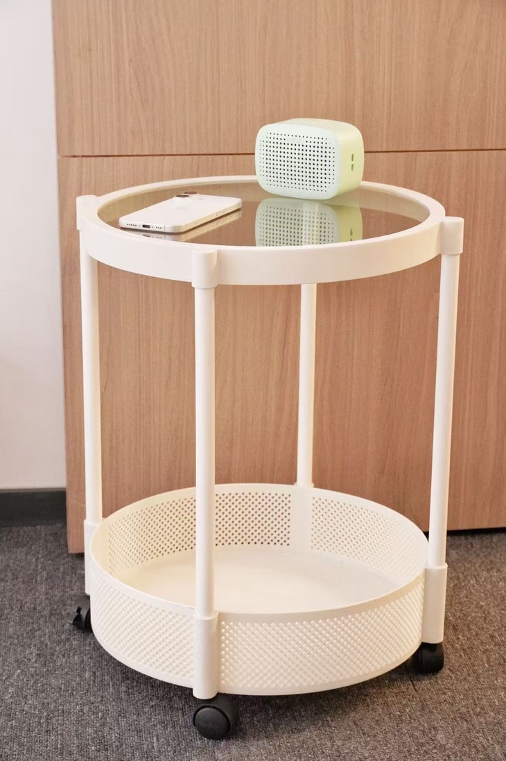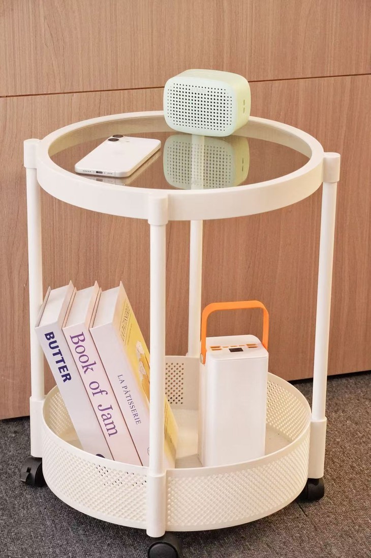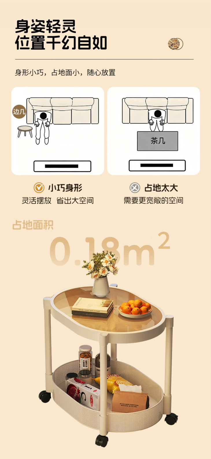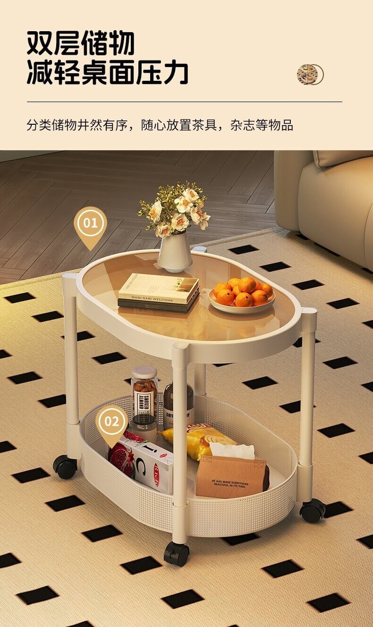 ✅超清晰玻璃桌面搭配简约框架,久看不腻更百搭 ✅小巧身形,占地面积仅0.18㎡,小户型空间也能随意放 ✅上层桌面置物+下层加高储物框,双层储物超实用 ✅48.5cm高度,使用高度合理,拿取物品方便不费力 ✅360度旋转万向轮,顺滑转动不伤地板,哪里需要推哪里 ✅加粗PP框架+四平受力设计,质感好,承重能力优秀