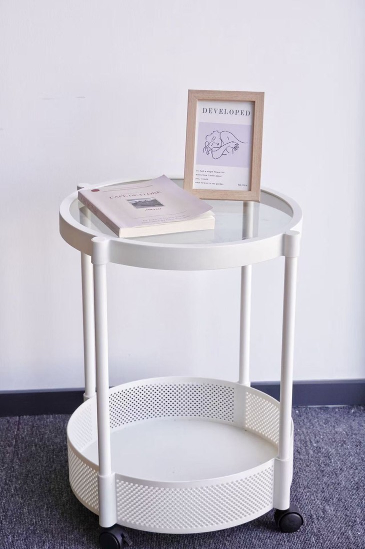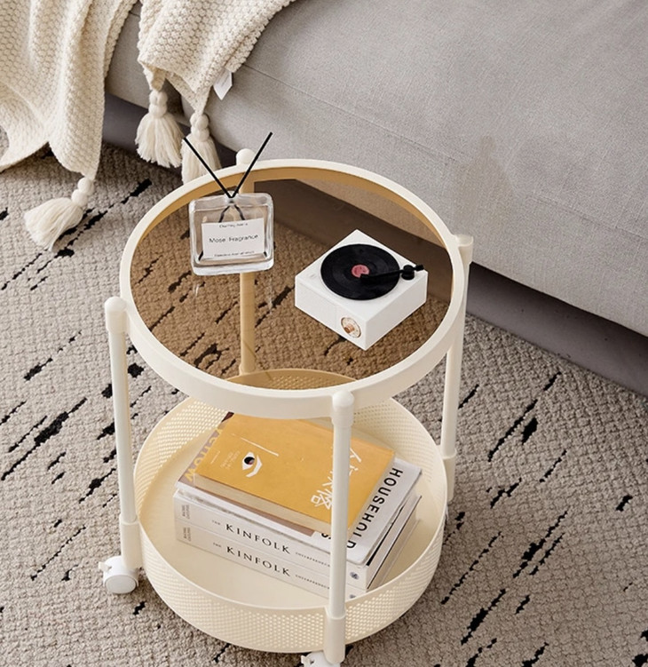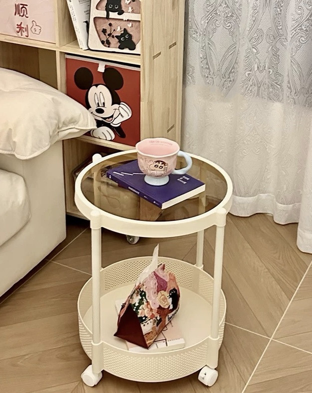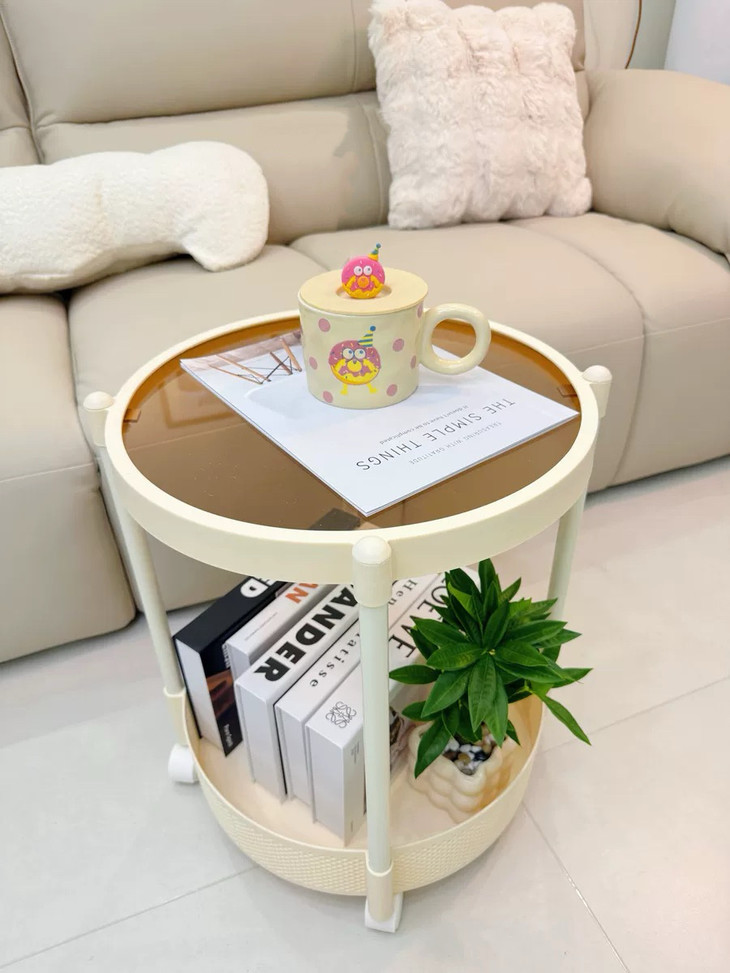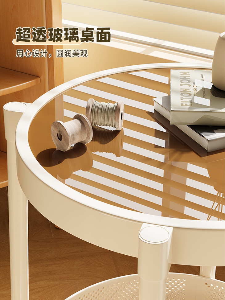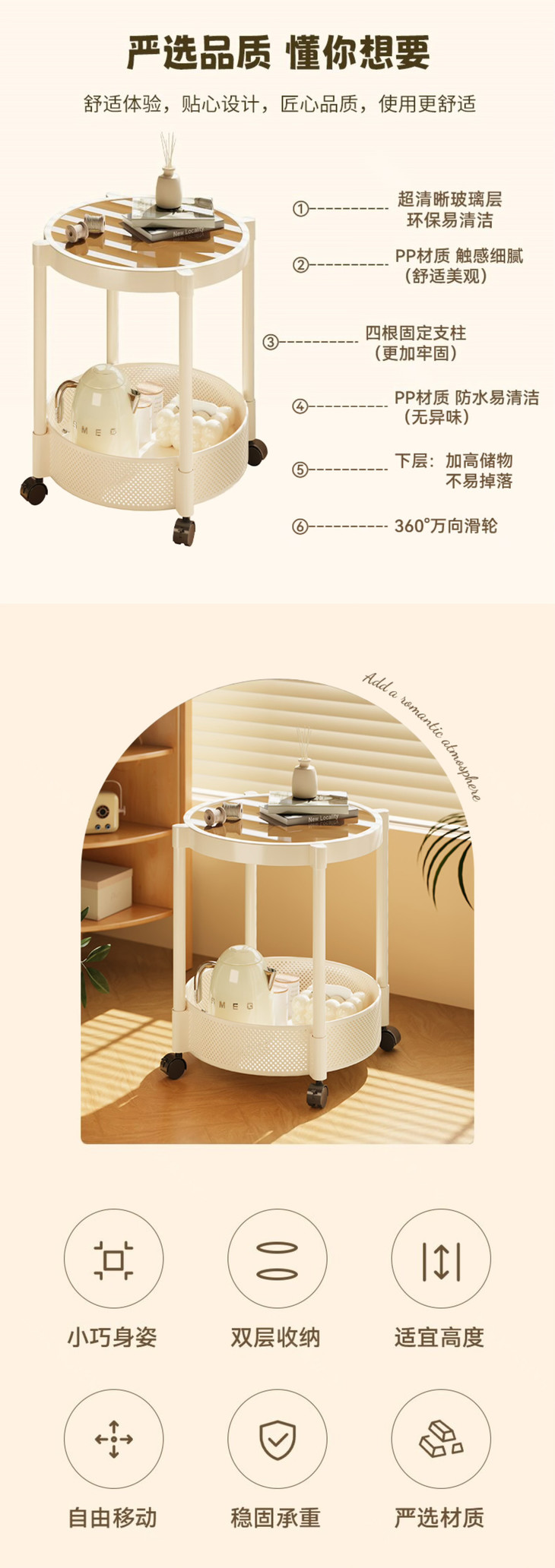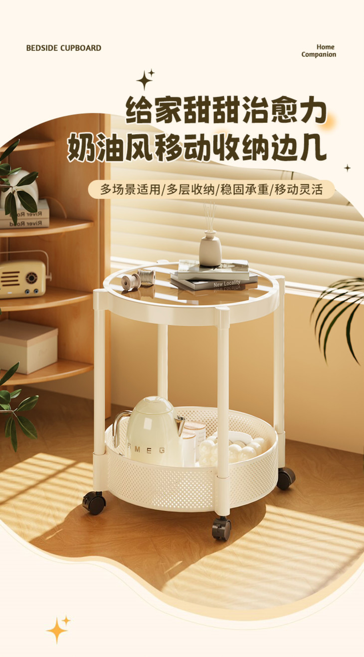 wind奶油风移动收纳边几 温柔奶油风搭配超透玻璃桌面,精致感直接拉满💯 下层自带的收纳区让桌面保持清爽 既是颜值担当,又是实用小能手 目前看过的几款边几里它的颜值绝对在前三甲