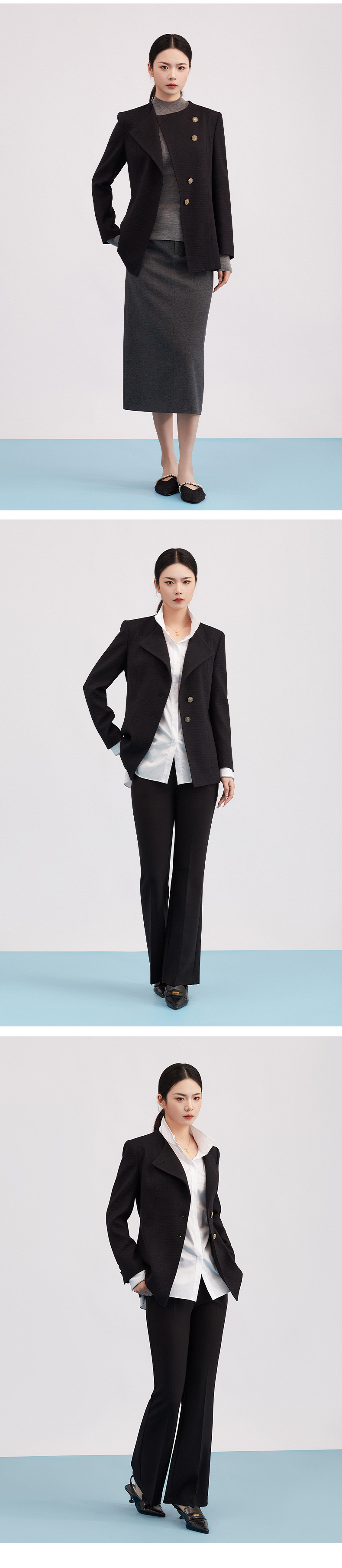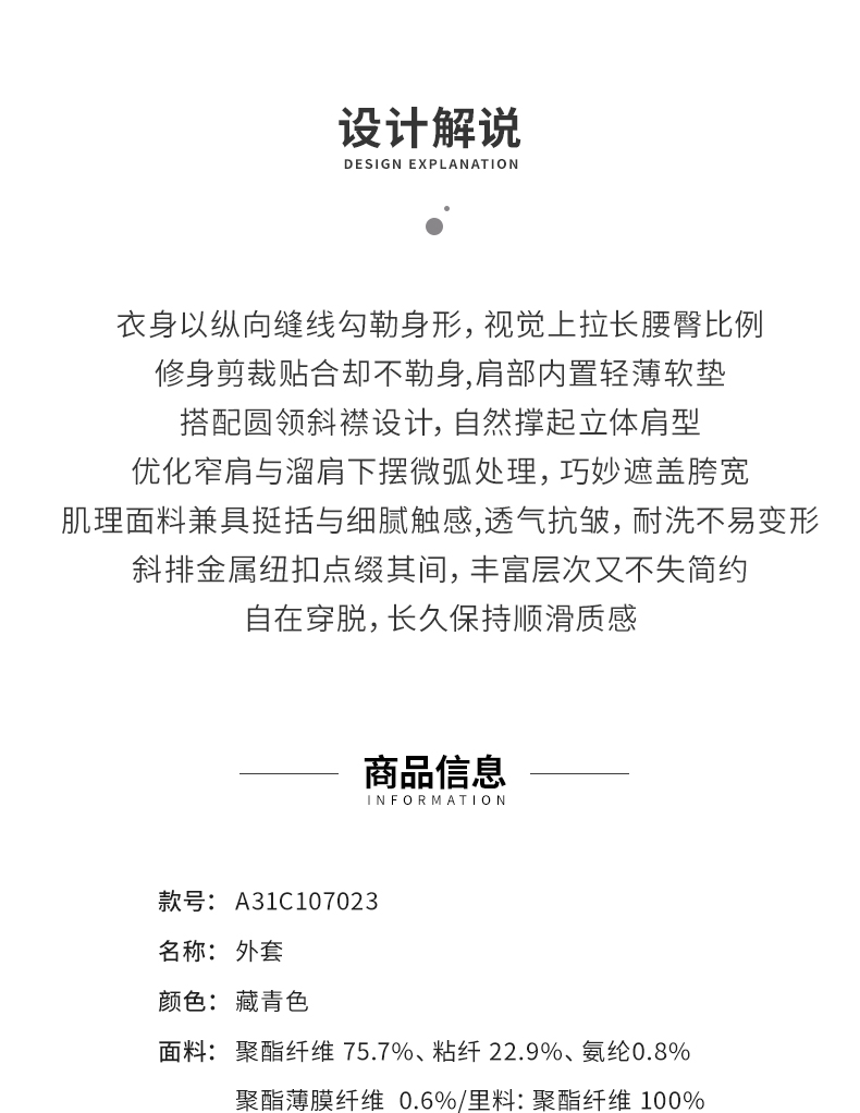 【商场同款】阿菁娜春季新款设计感斜襟上衣金属纽扣斜排点缀圆领利落肌理挺括A31C107023