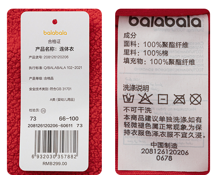 【balaOne】巴拉巴拉童装儿童连体衣2025新款春装年服加绒可爱萌