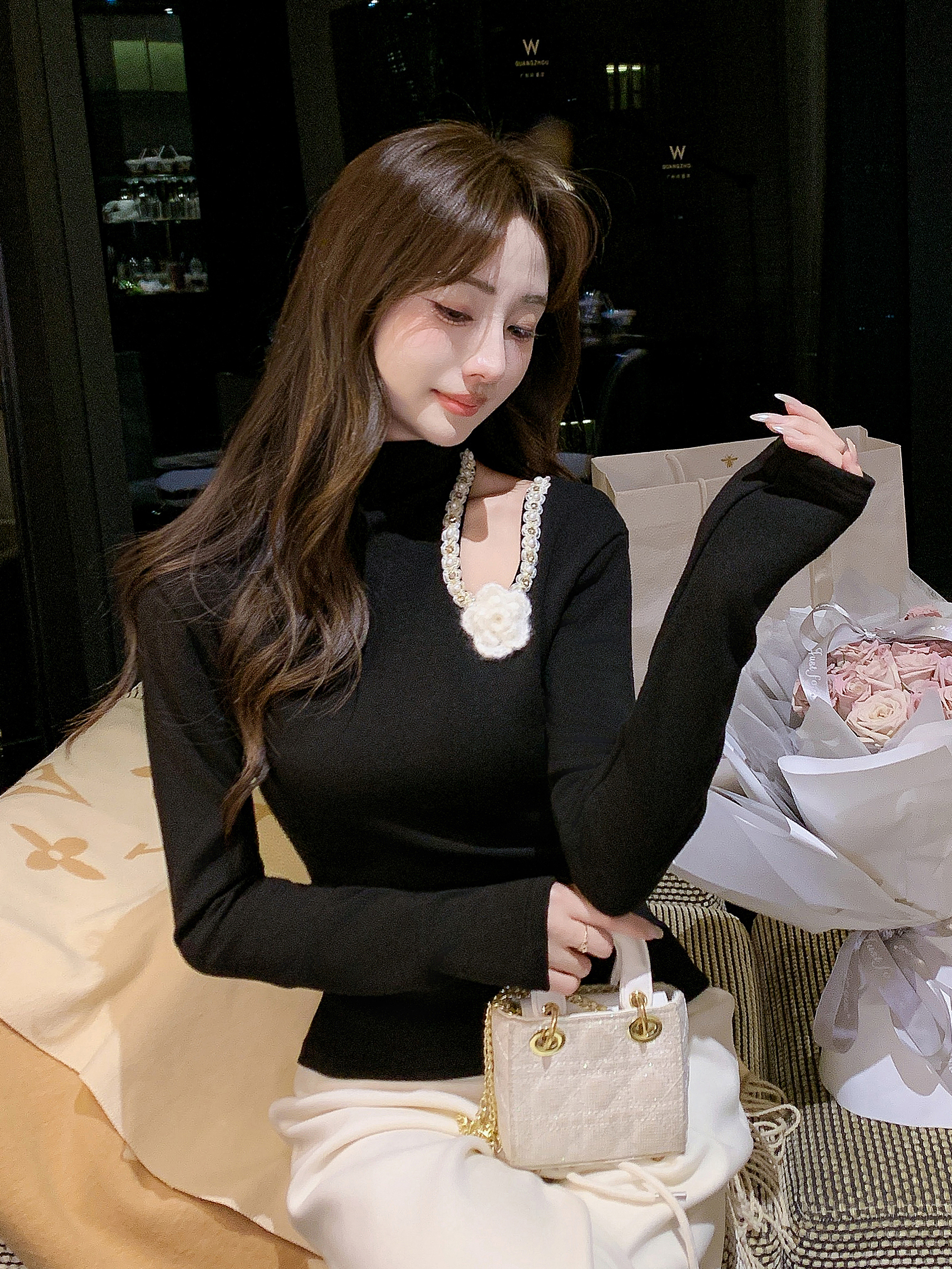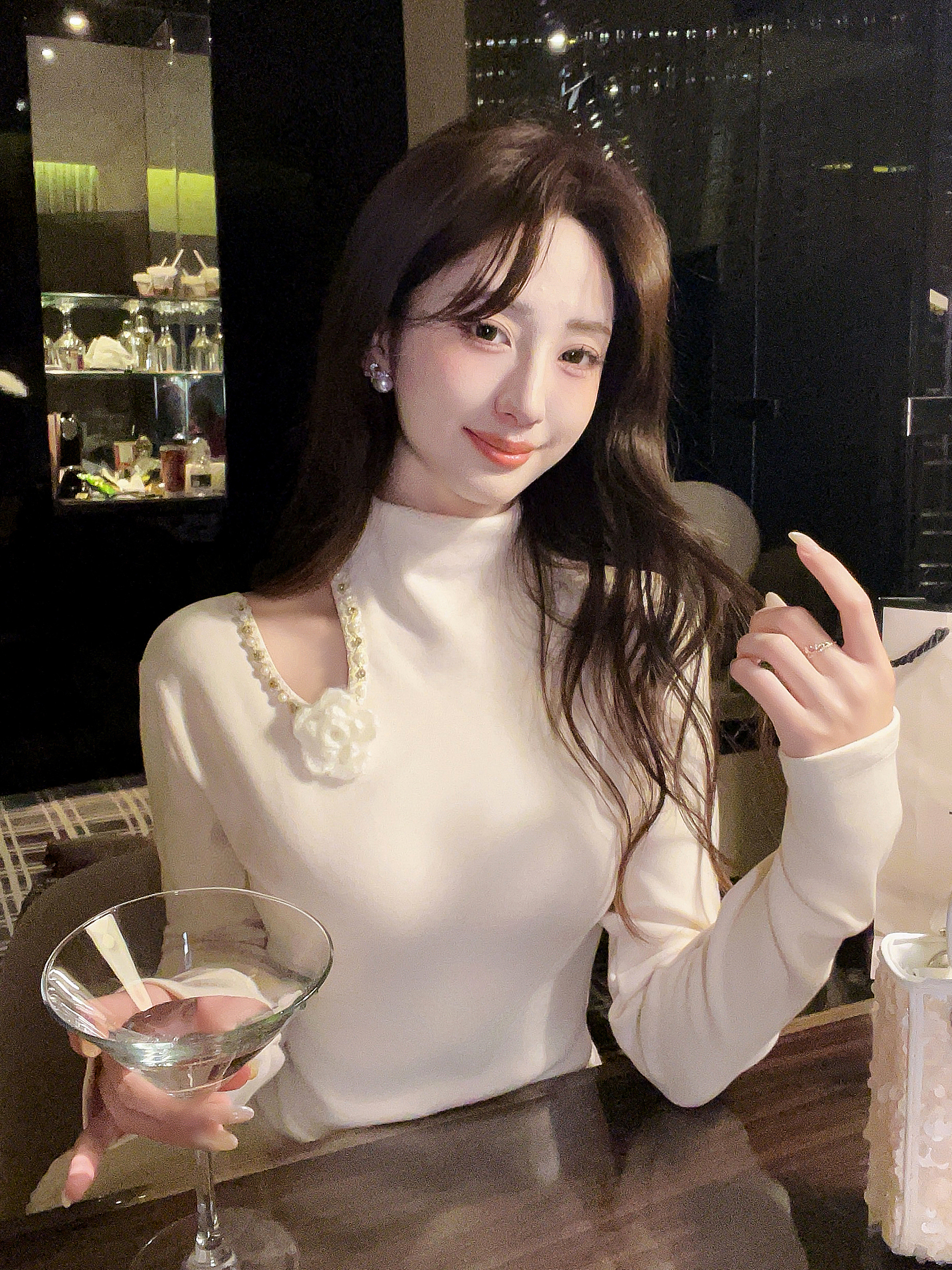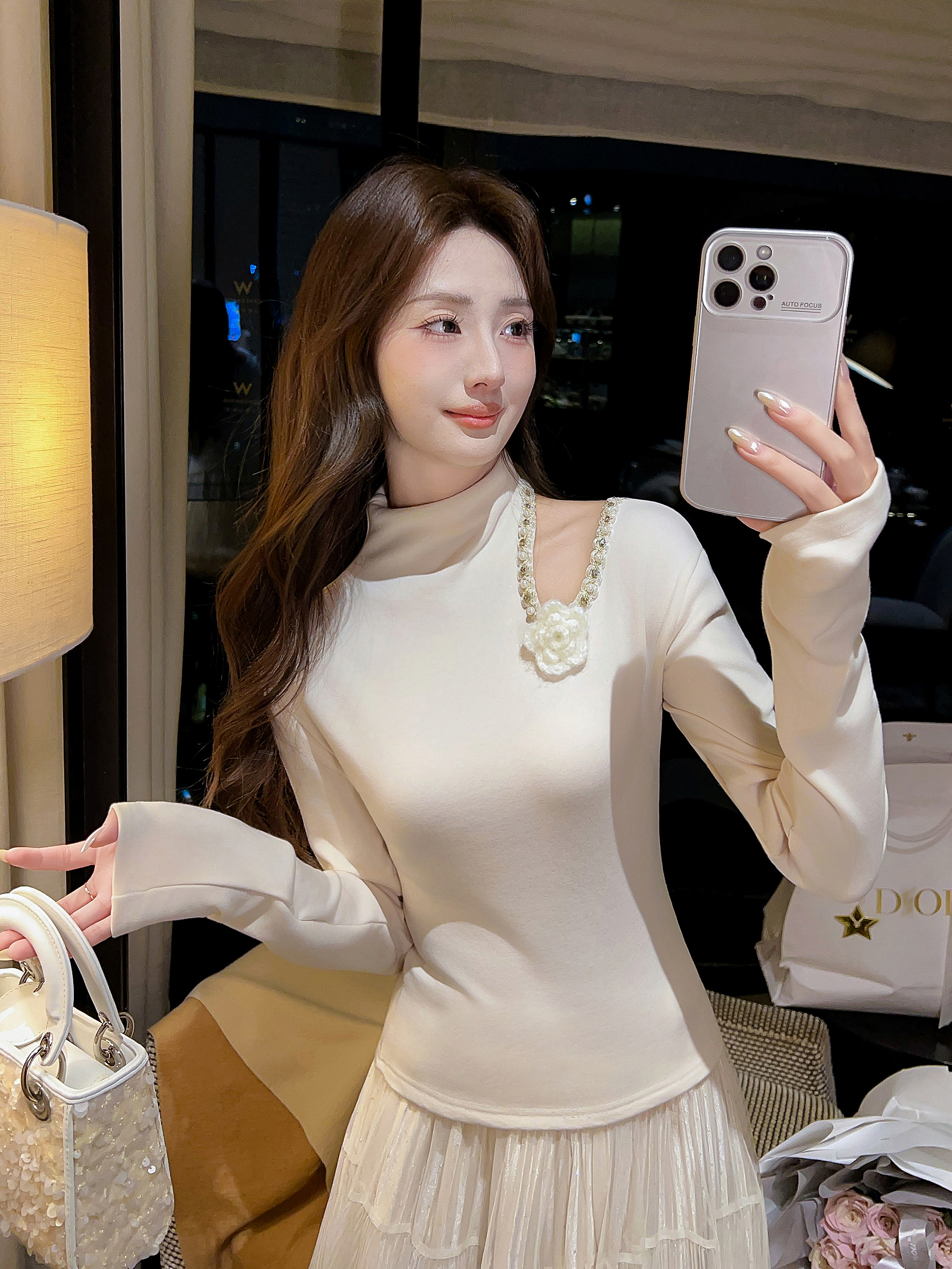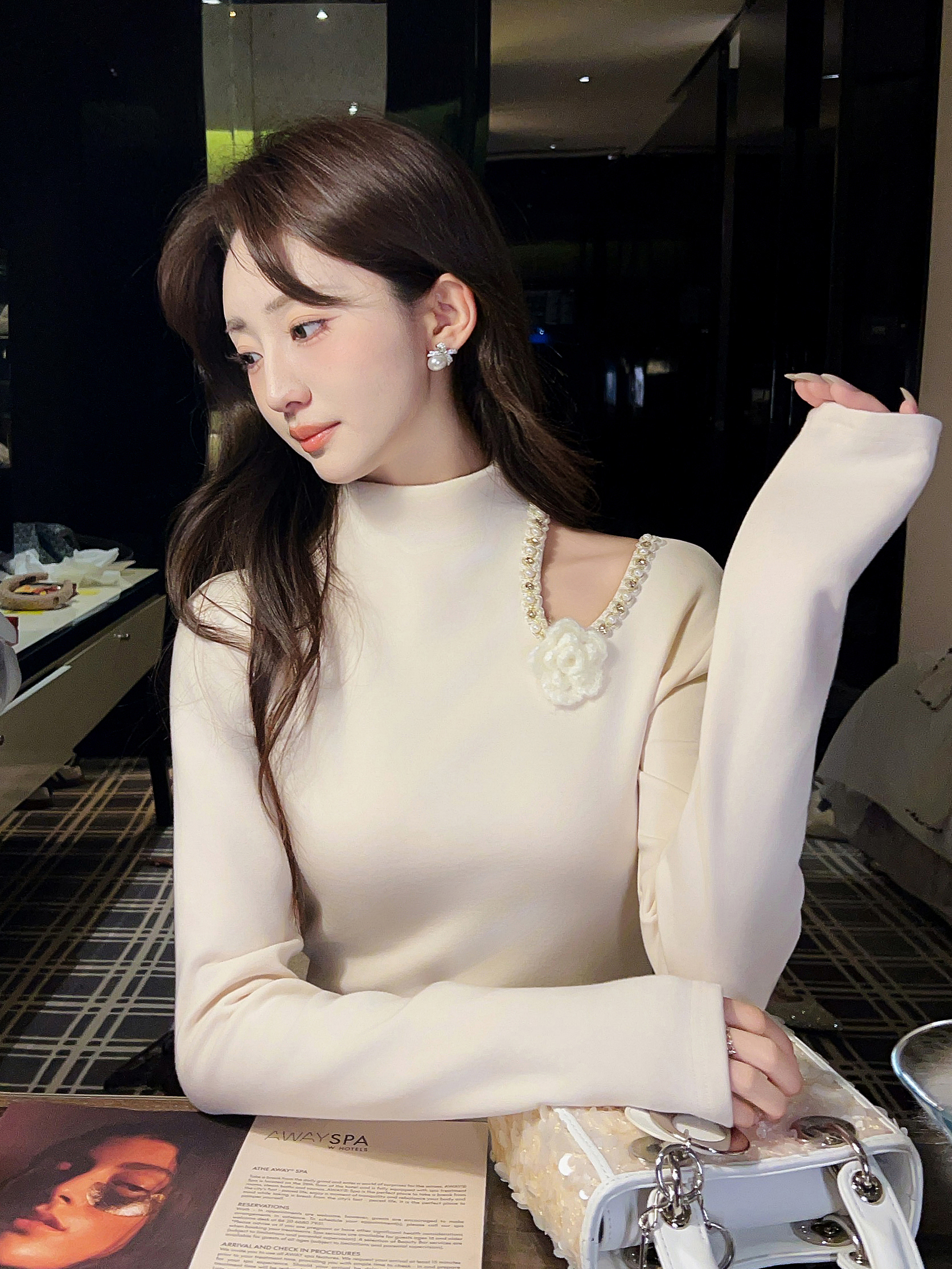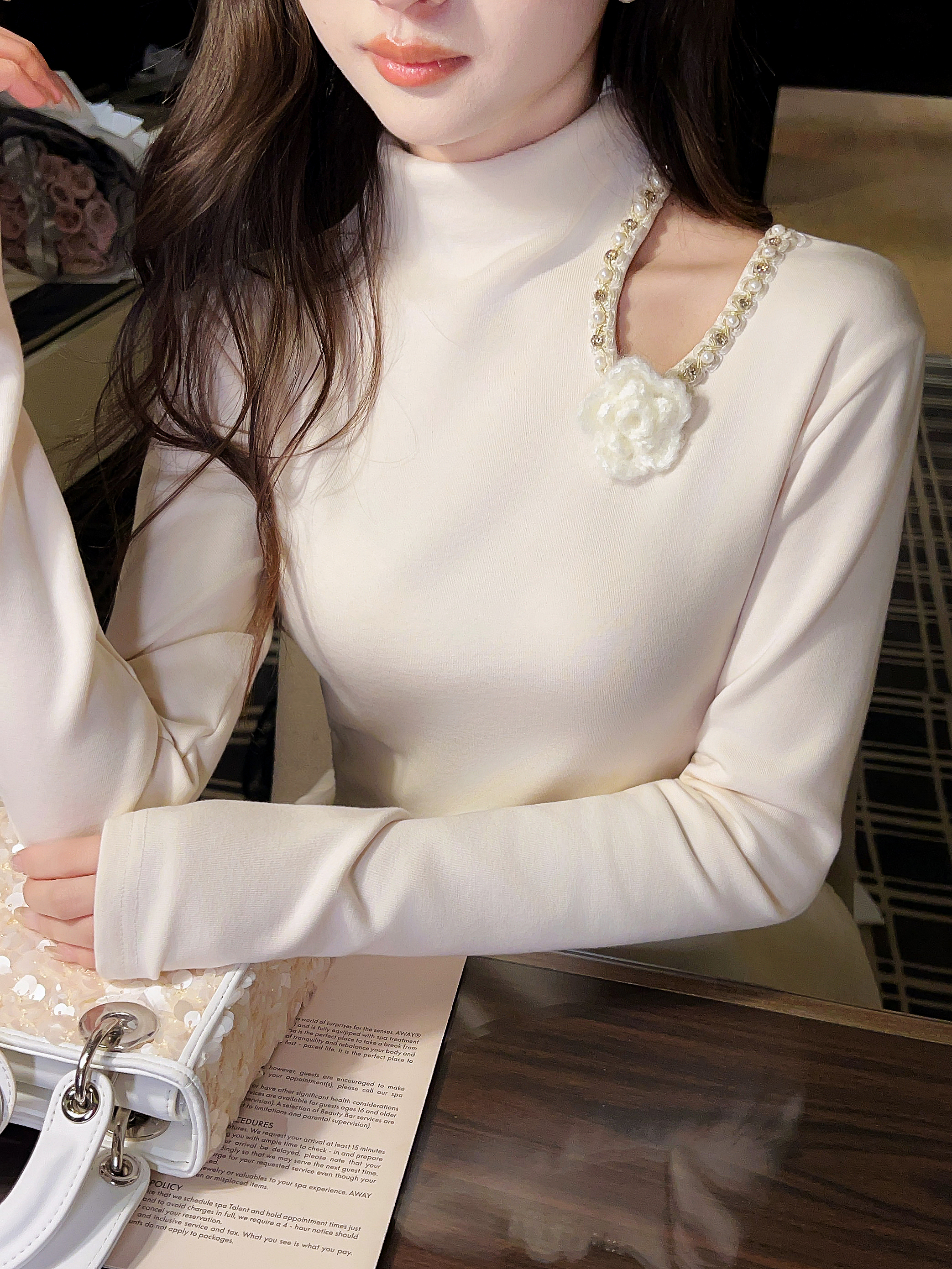 张心子【香氛美人】小心机挖空露肩半高领上衣 U2602014