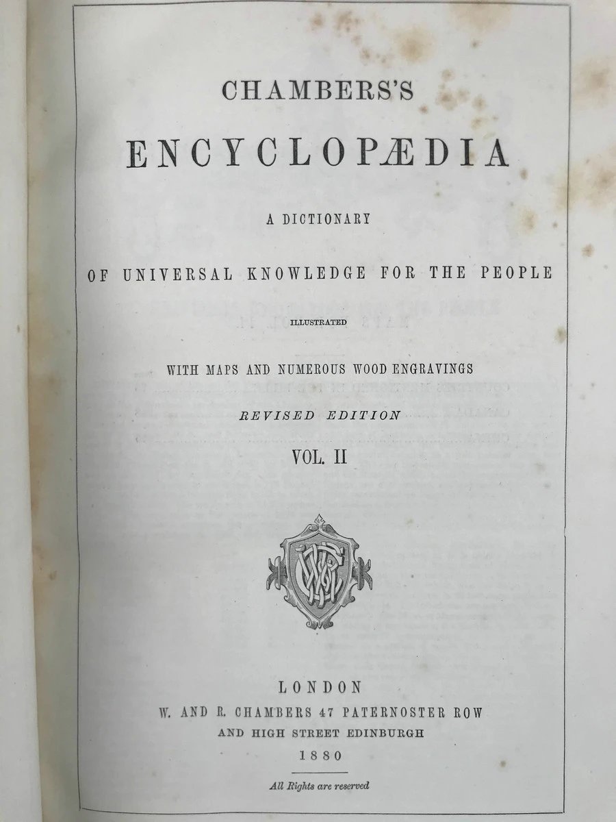 含中国内容!1880年 钱伯斯百科全书(卷2) 数百幅版画插图 真皮精装16开