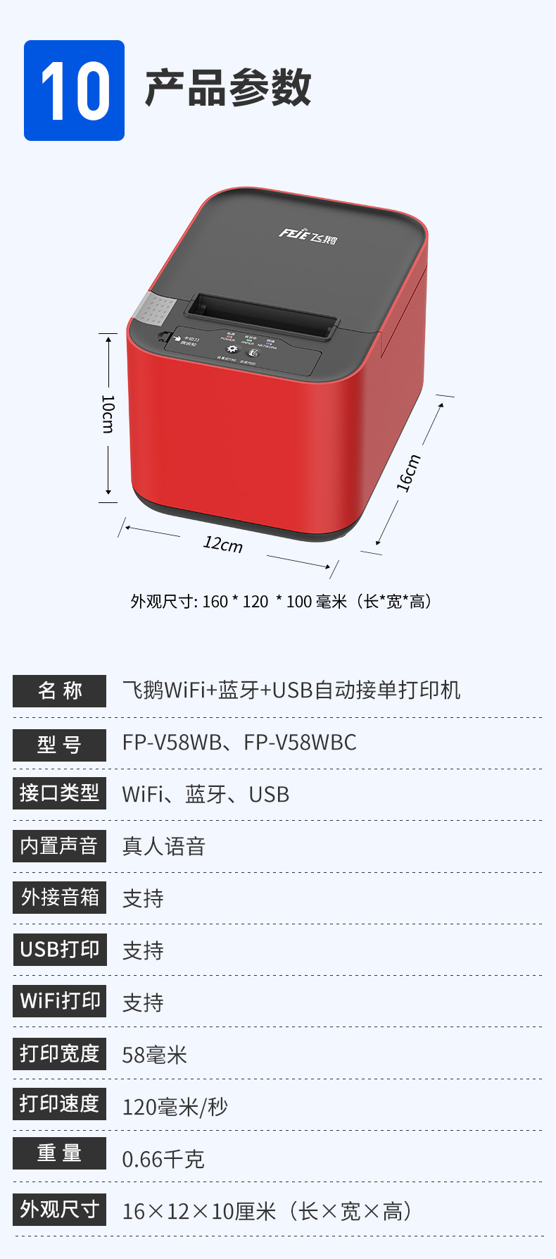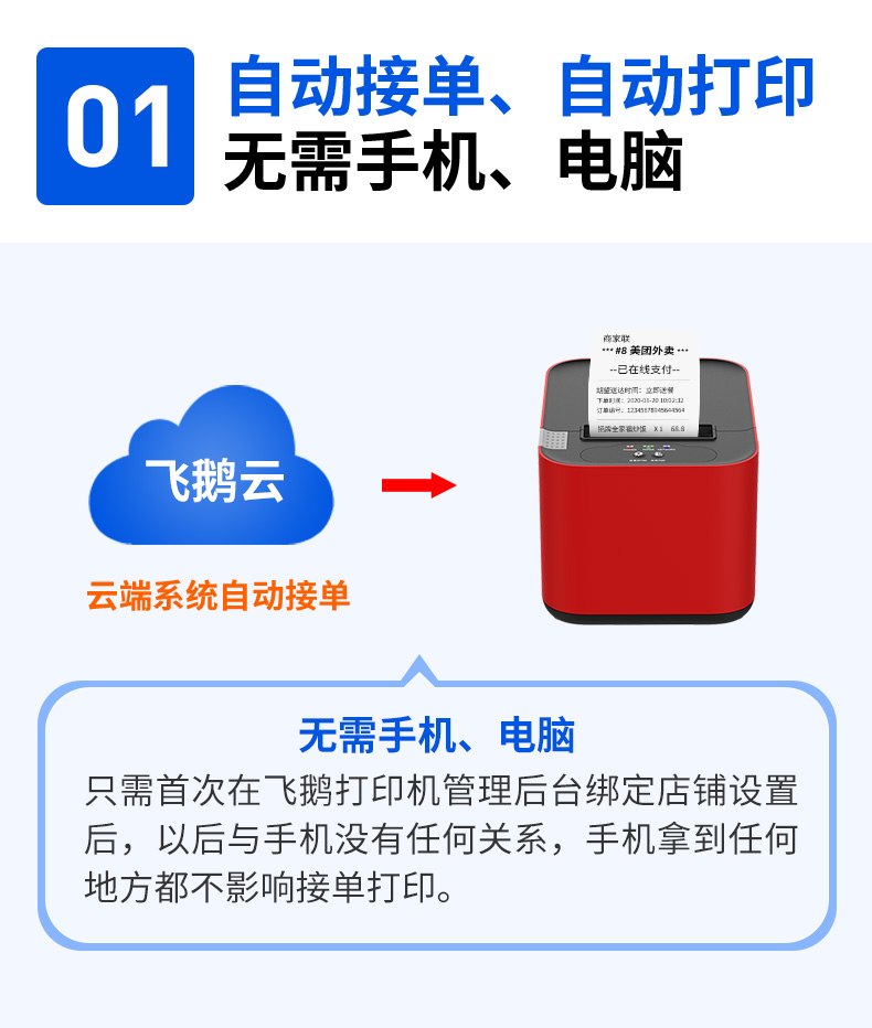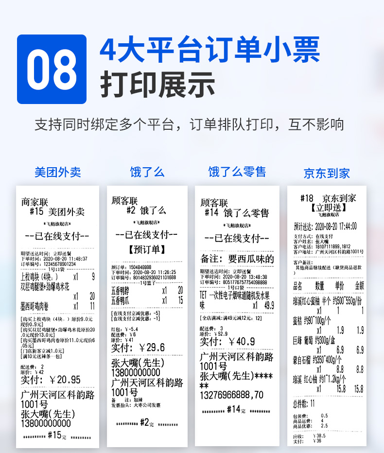 飞鹅WIFI+蓝牙+USB全自动接单打印机饿了么美团外卖云打印机