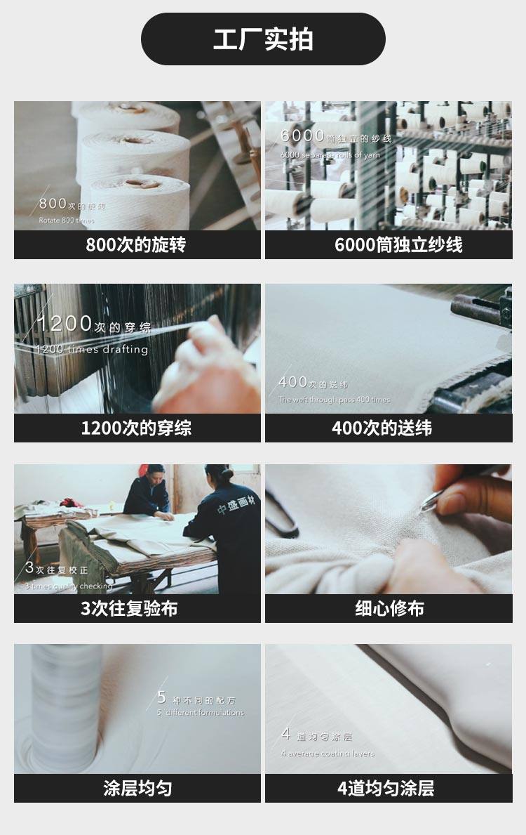 幅宽174cm/220cm中盛5185双经双纬中纹亚麻混纺涂层油画布油画颜料
