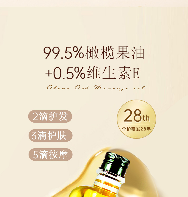 依风按摩润肤橄榄油 135ML/瓶 补水保湿 温和滋养护肤 持久保湿不油腻 不添加香精防腐剂 全身可用