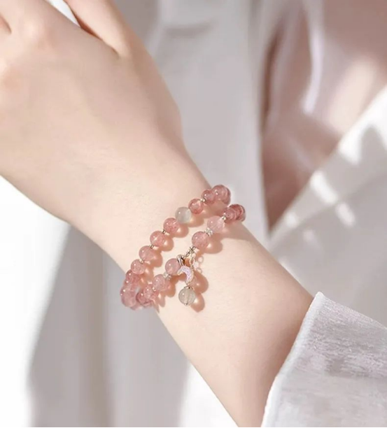 粉水晶+草莓晶的搭配,想要脱单或者感情顺利的必入!