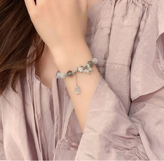 再加上灰色月光石,整个手串显得简约又高级,戴上手就像自带清冷感的大美人。