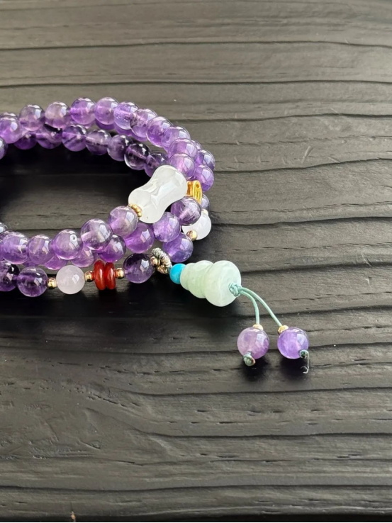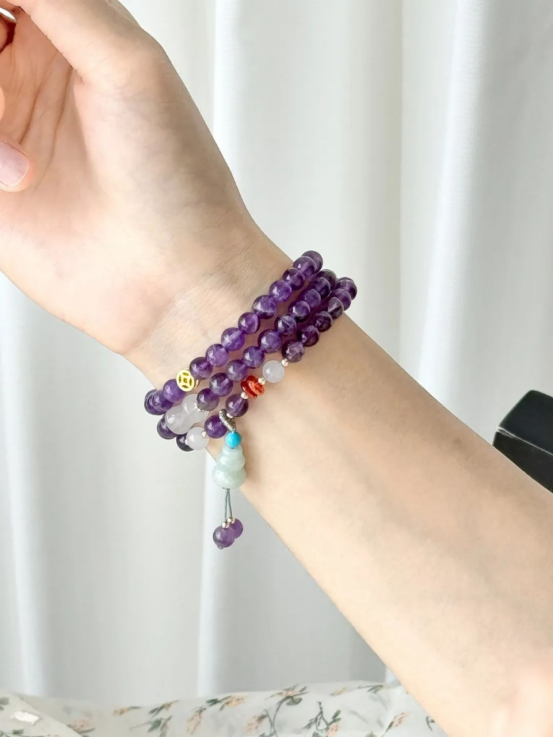 办公室有个麻将爱好者的同事就入了这款,说自从戴上了这串紫水晶,在麻将桌上真的有如神助~