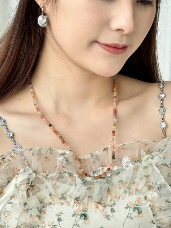 04 联名款-星月神话 198元 人工调制的粉色总觉得要么粉嫩挑年龄,要么媚俗没品位。 但这串星月神话,不愧是出自大自然之手的作品,整体有一股高级的冰透感。