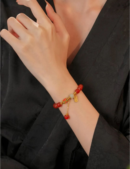 如果你是入门级的新手,这串50+的红玛瑙手串就很适合,很正的中国红,既能提肤色还有好意头,戴上手温婉又有气质~