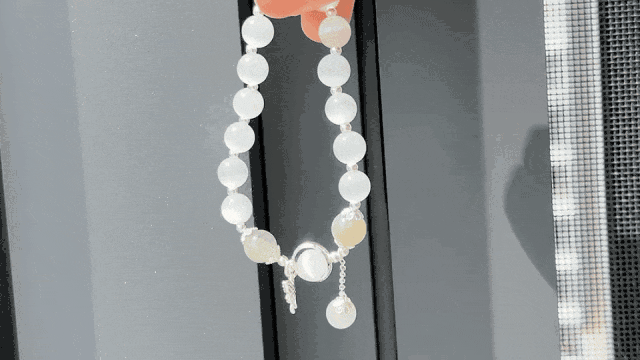 手串采用月光石+合成水晶+玻璃的材质,拿在手里也是那种很有质感的。 整体设计感十足~追求性价比的朋友可以从这款入手~