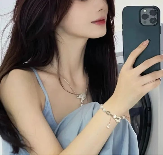 吊坠处悬挂了一个镶嵌着碎钻的蝴蝶,举手抬足间折射出好看又不张扬的微光。