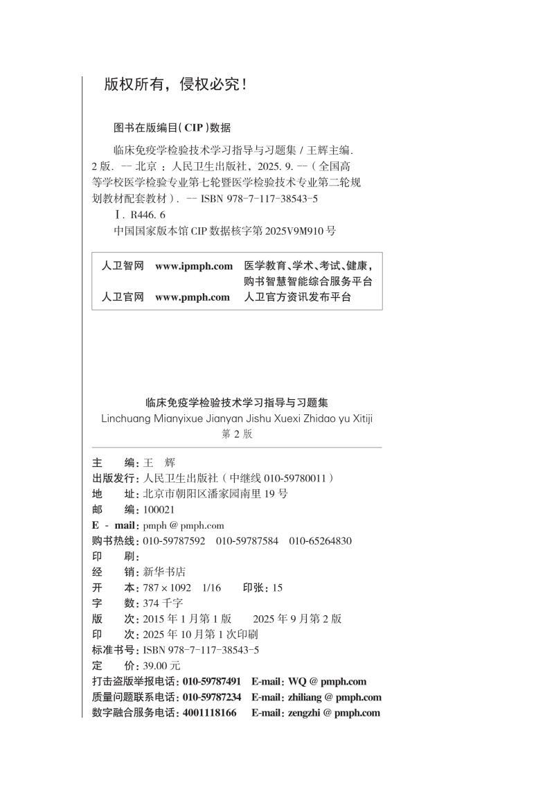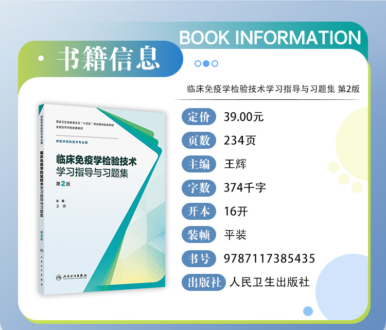 临床免疫学检验技术学习指导与习题集 第2二版 十四五规划教材配套教材全国高等学校配套教材 王辉 9787117385435 人民卫生出版社