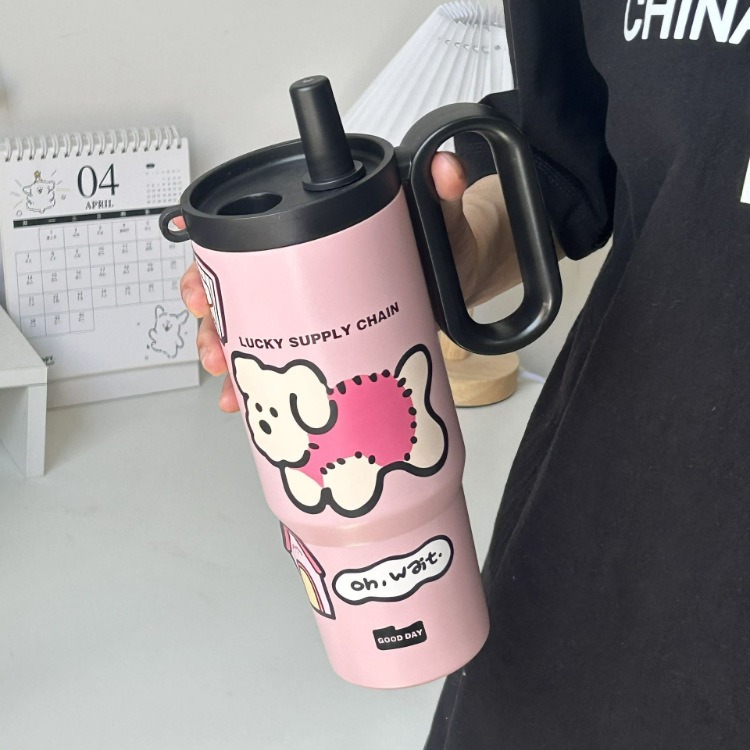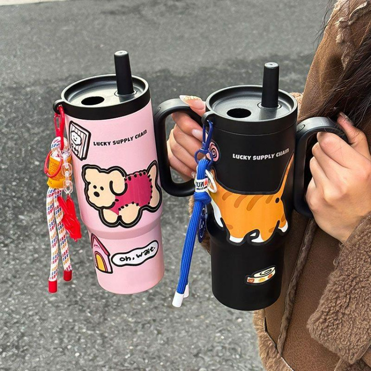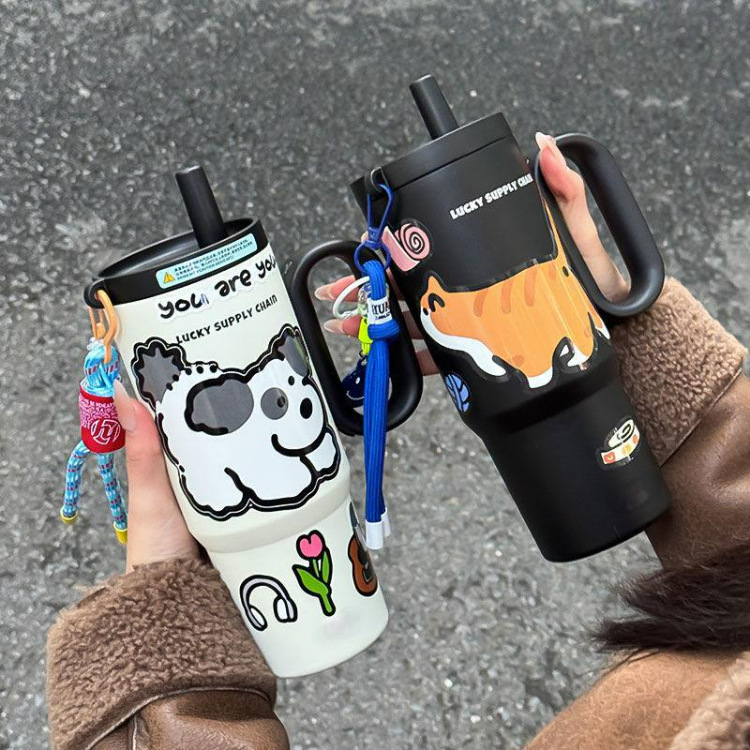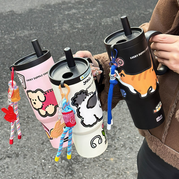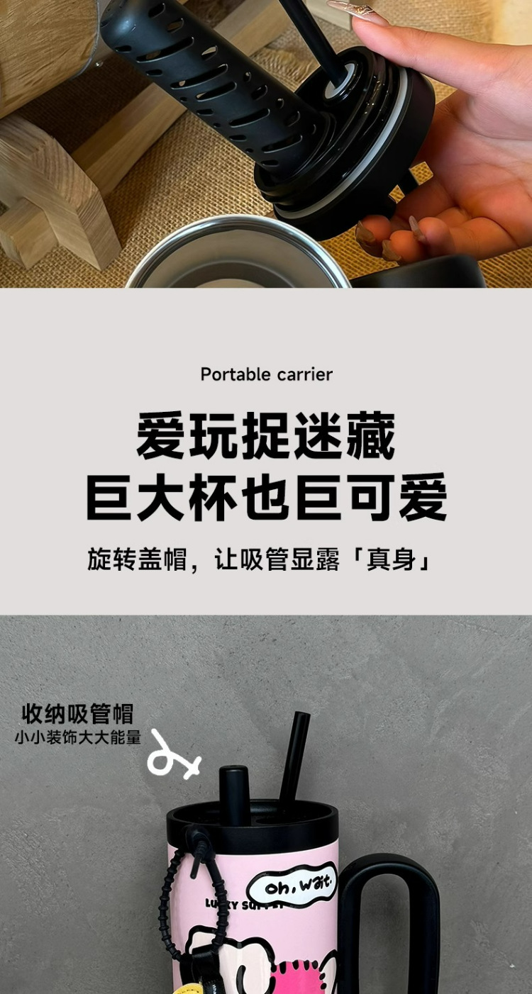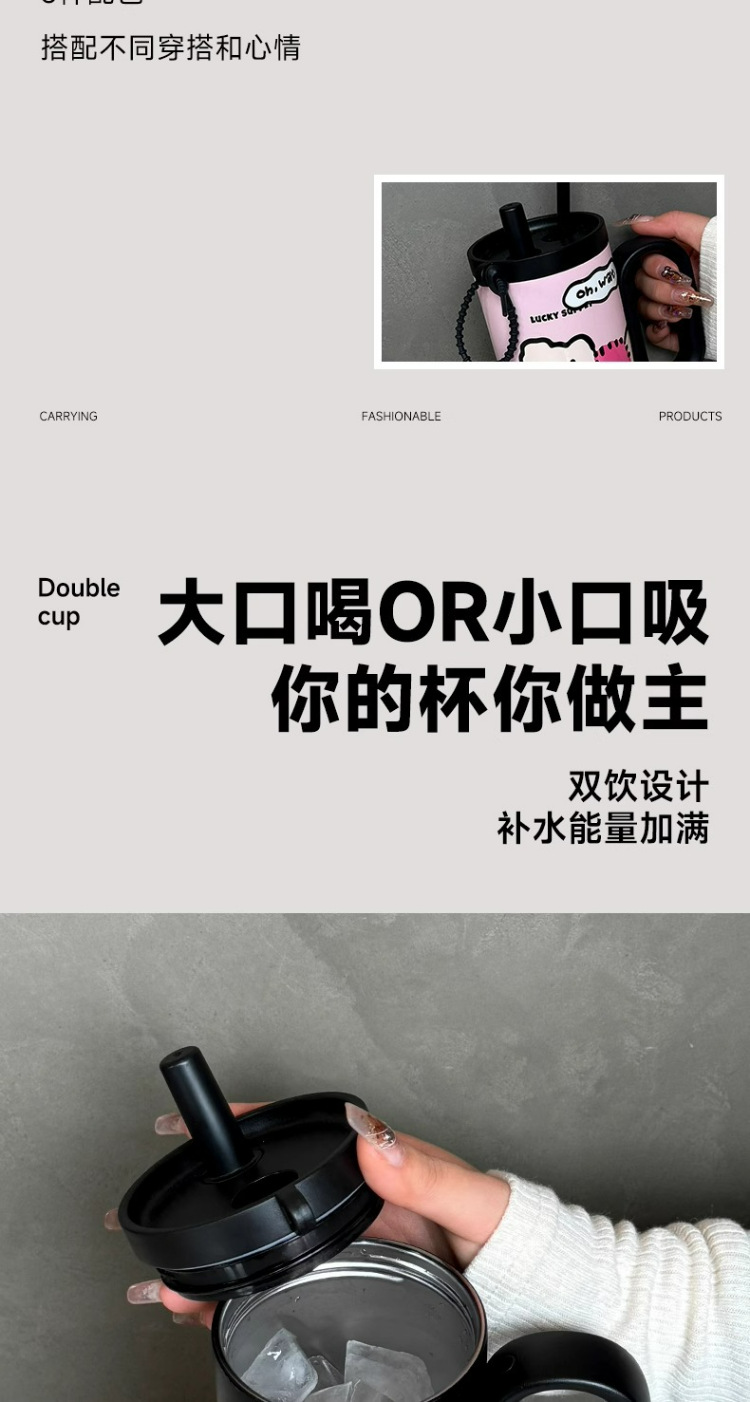 【高颜值❗️萌趣水杯】冰霸杯吸管杯双饮保温杯便携随行巨无霸不锈钢学生萌趣水杯。ya