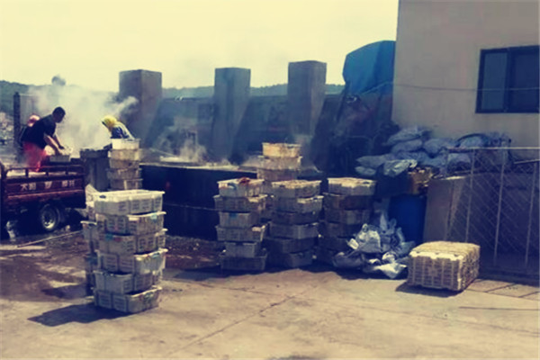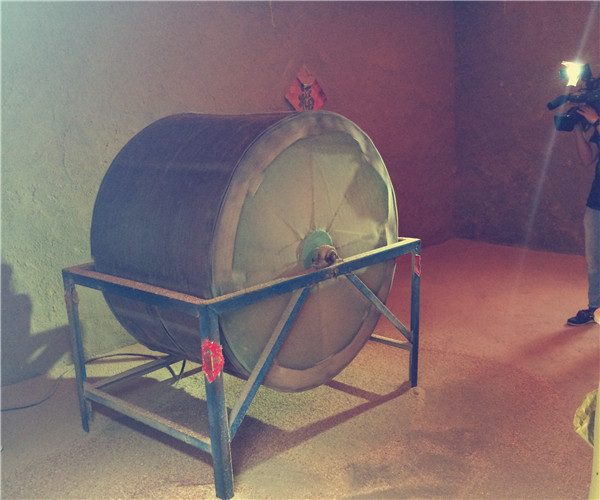 (上图)上图为机器脱皮加工晾晒好的海米,晒干的小虾,需要装入这样的机器。机器滚动使其脱掉外面的虾皮,这个过程叫脱皮。装的不能太满。一次脱皮的时间在4个小时左右。拣选后的海米马上送入冻库,以保证海米的新鲜。