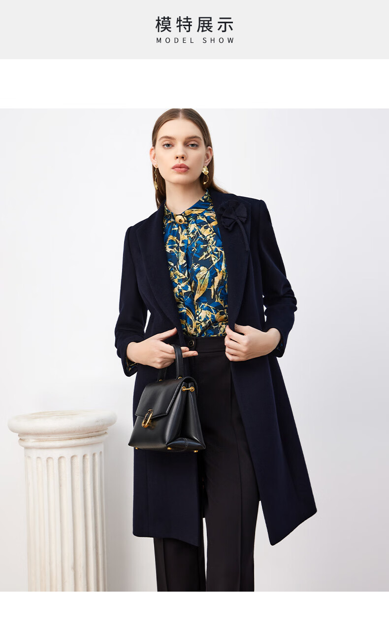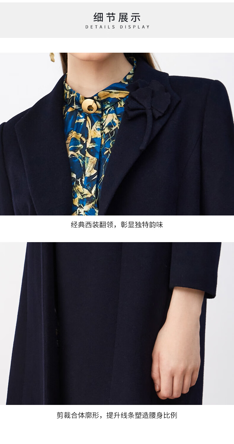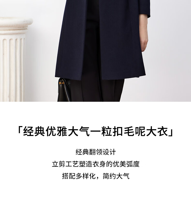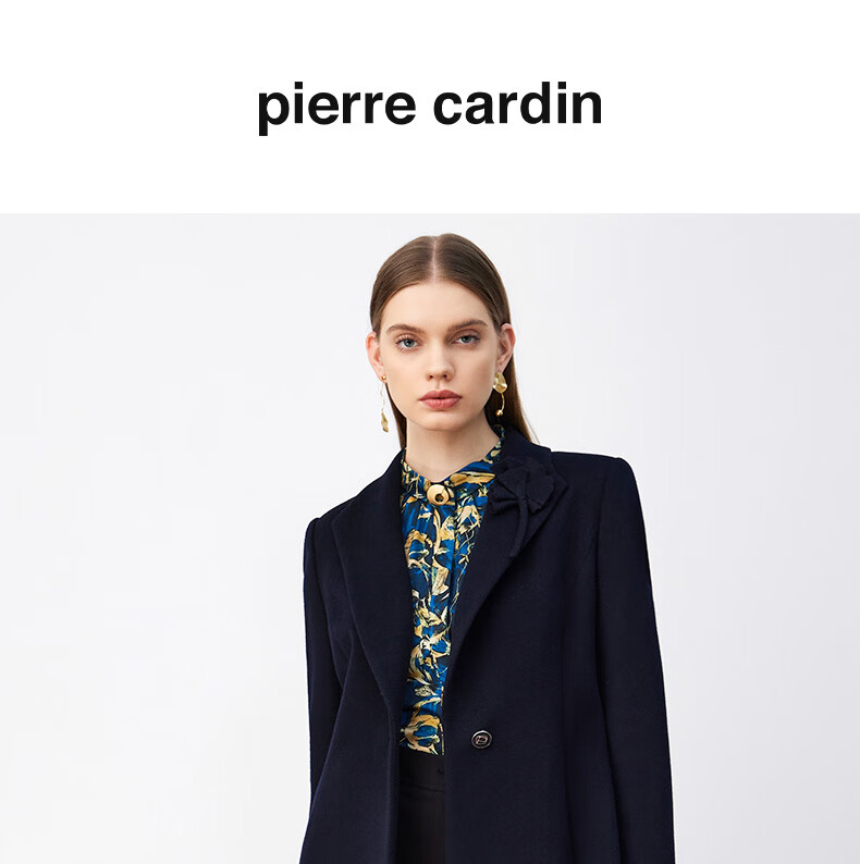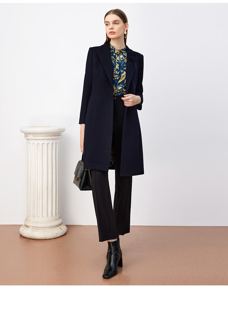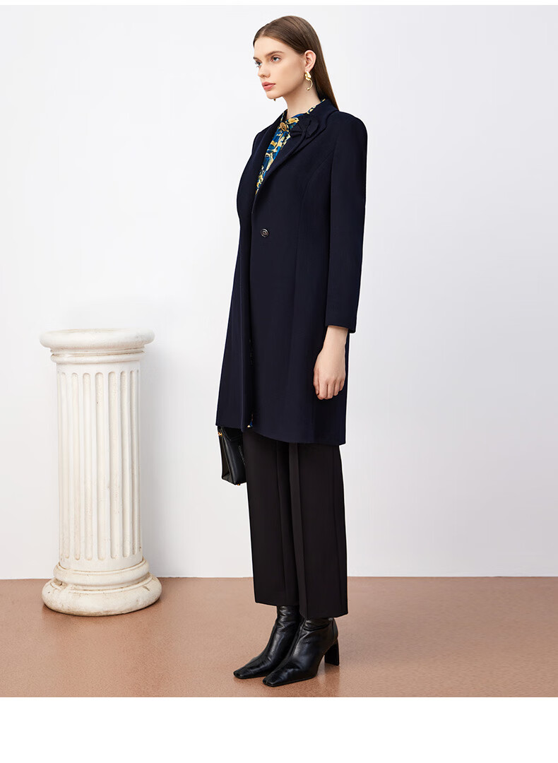 皮尔卡丹女装大衣经典翻领藏蓝色通勤一粒扣大衣P3450C3965N2