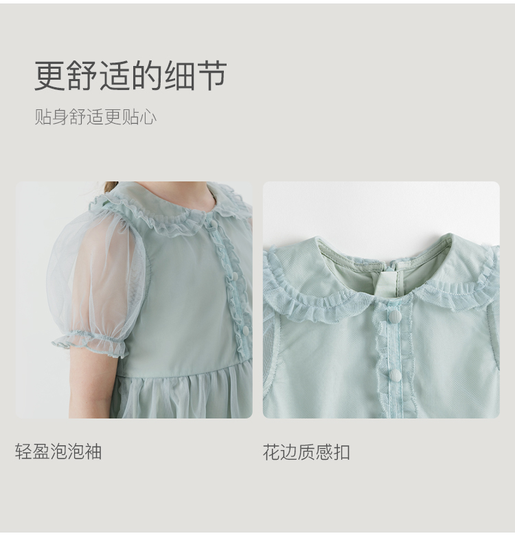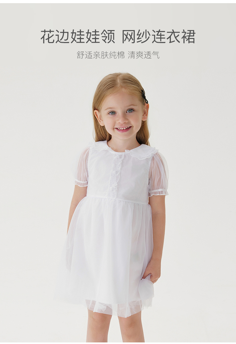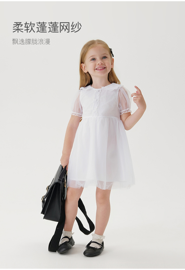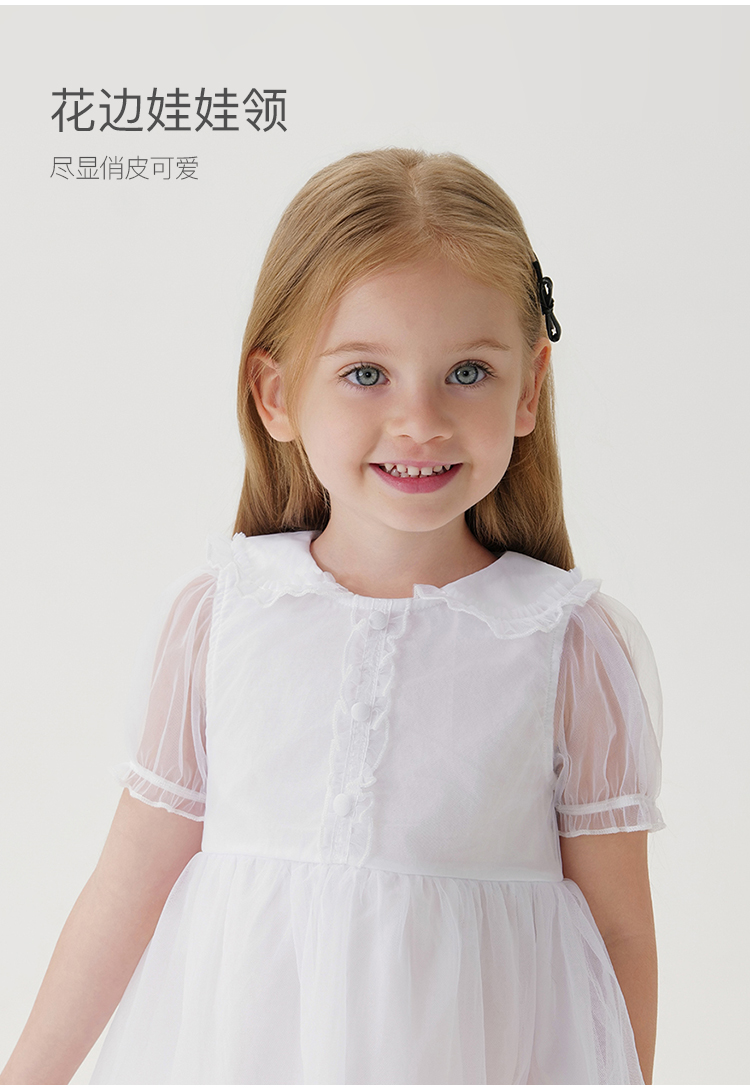 marcjanie马克珍妮新款夏装 女童泡泡袖网纱连衣裙230975