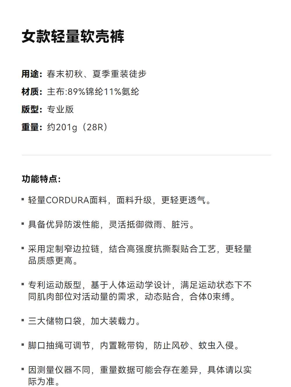 KAILAS凯乐石 女款轻量软壳裤 KG2519403