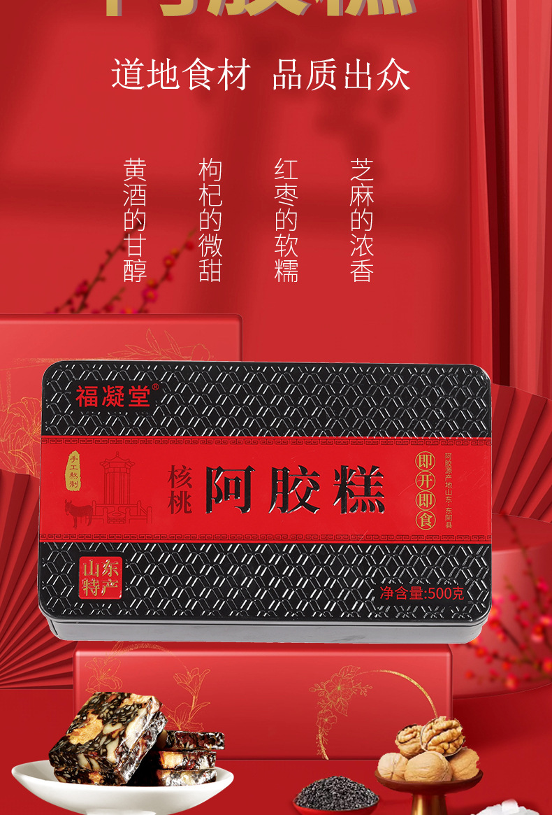 【科学配比,山东特产阿胶 】东阿即食阿胶糕阿胶500克,糯唧唧有嚼劲胶香浓郁软糯可口,真空包装,锁鲜更安心铁盒装阿胶糕独立小包QQ