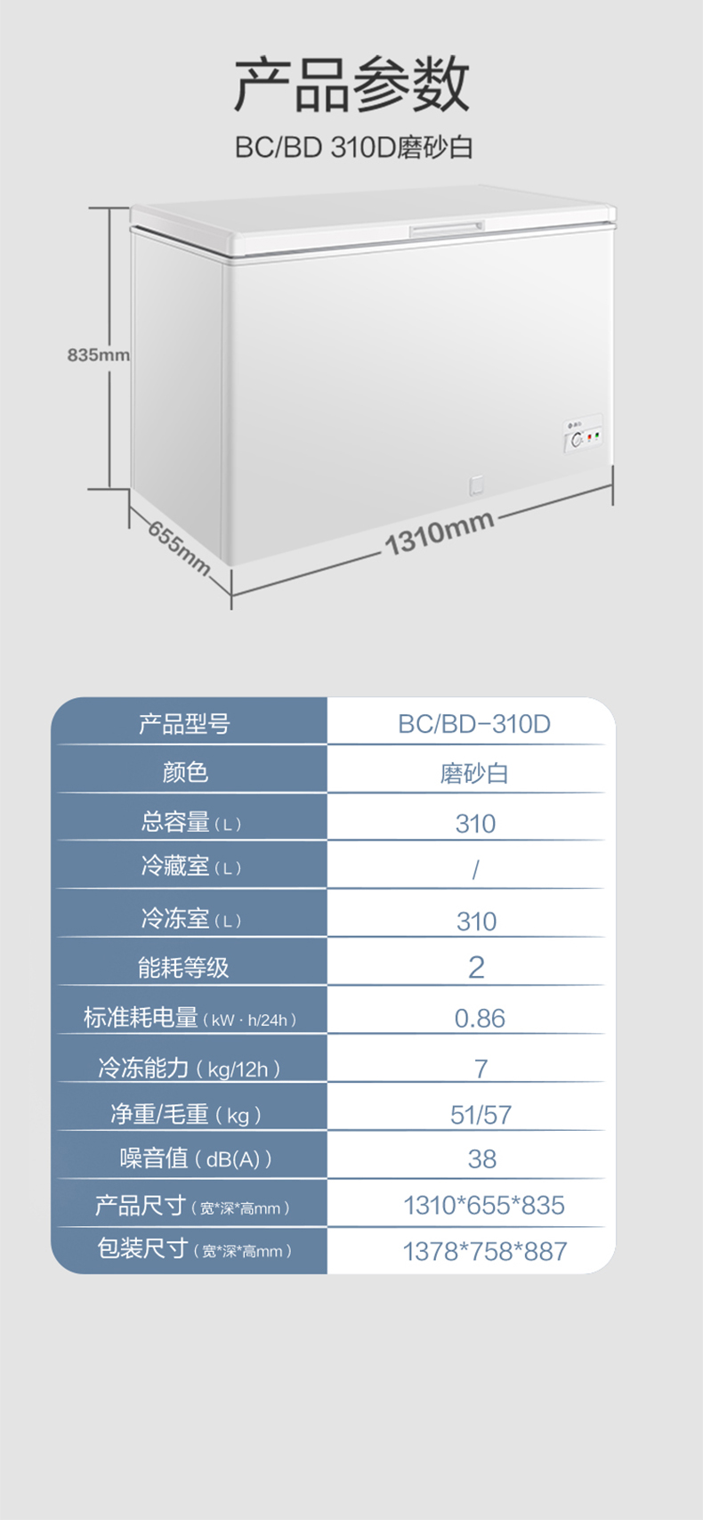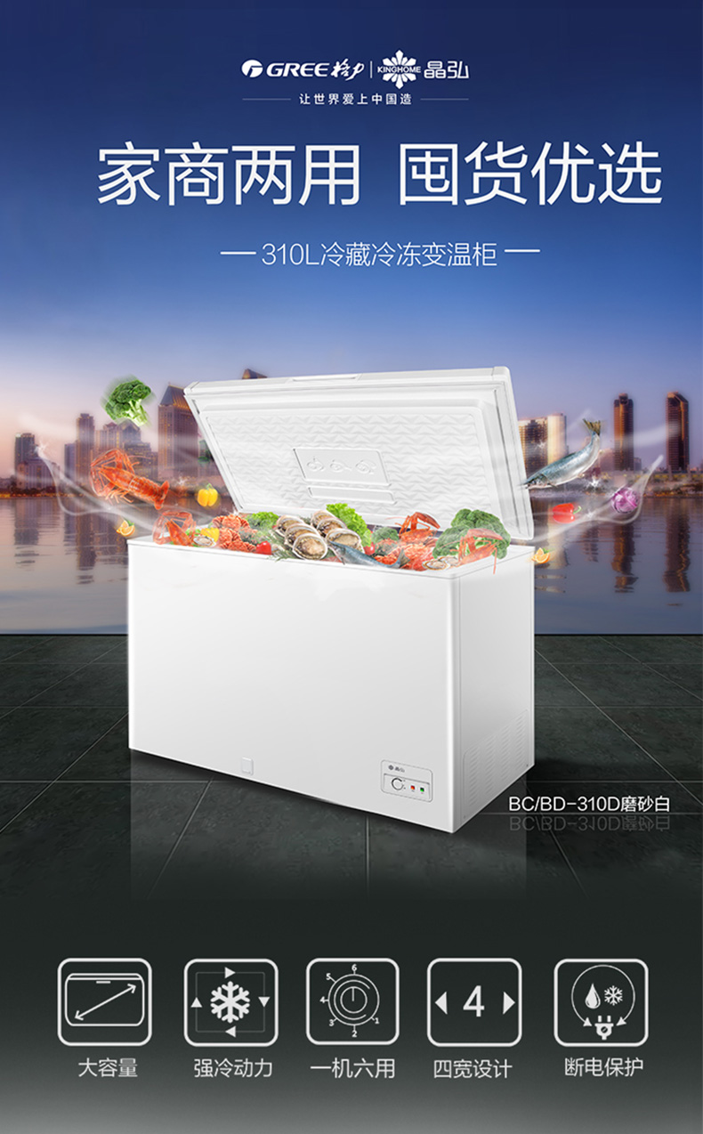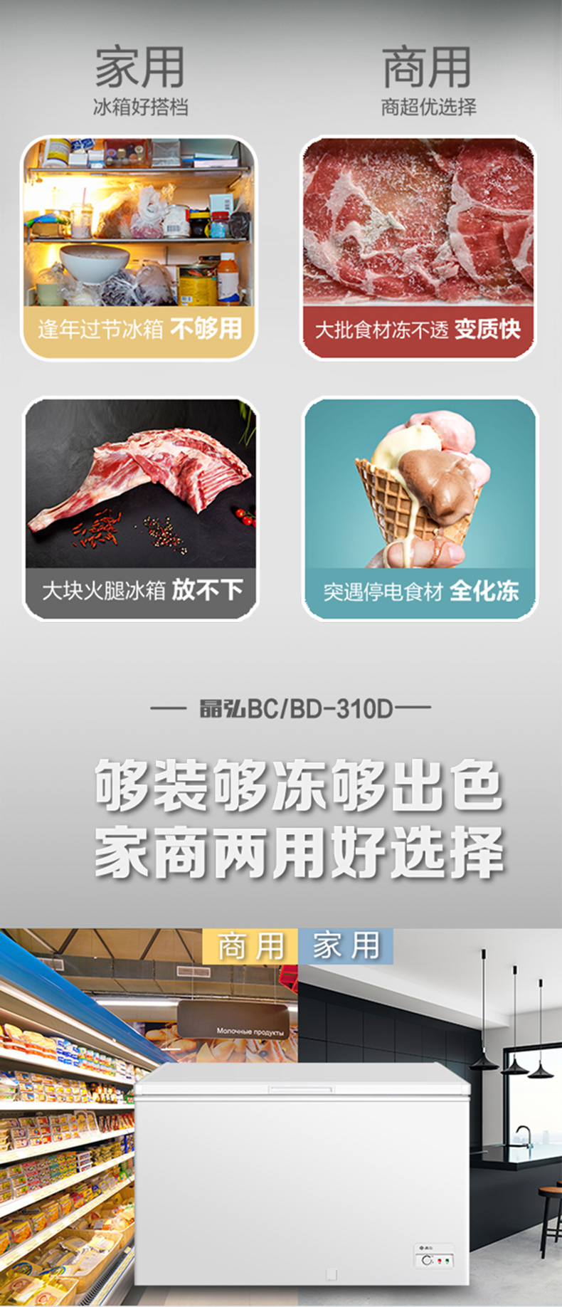 晶弘·冰柜 单温转换柜 310L BC/BD-310D/磨砂白