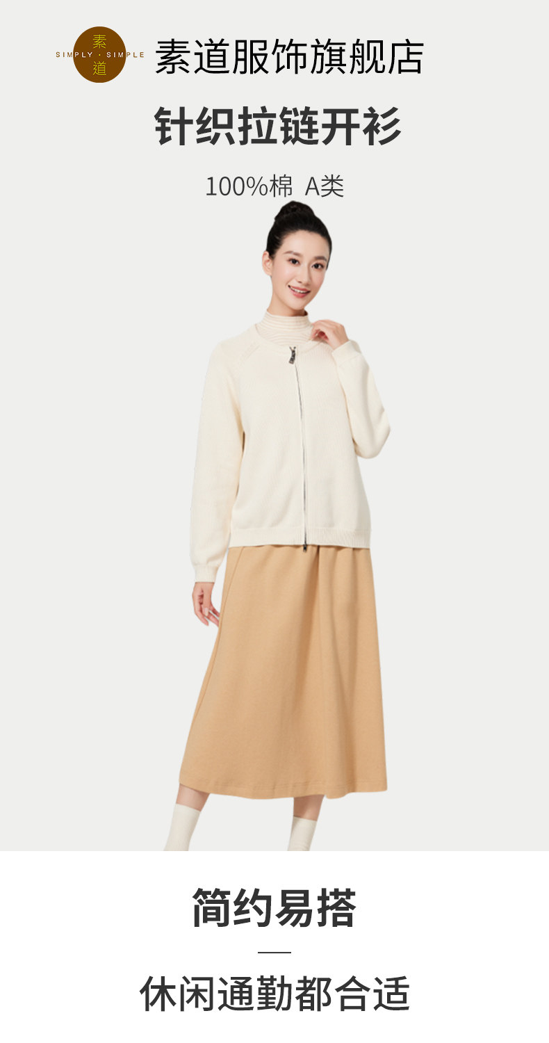 【女士针织拉链开衫】素道纯棉针织拉链衫女士白色秋冬开衫(基地直发-韵达包邮),来自敦煌,品牌:素道【合作生产,公平贸易】